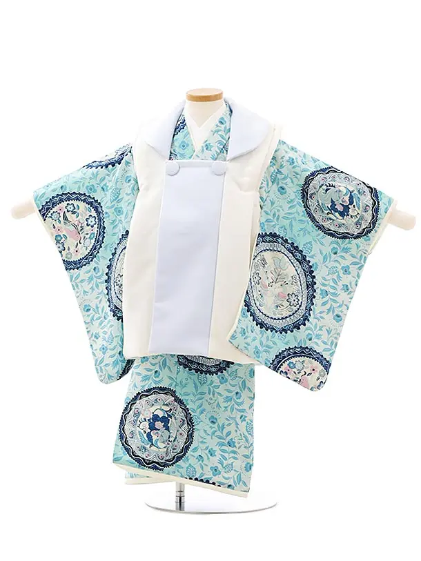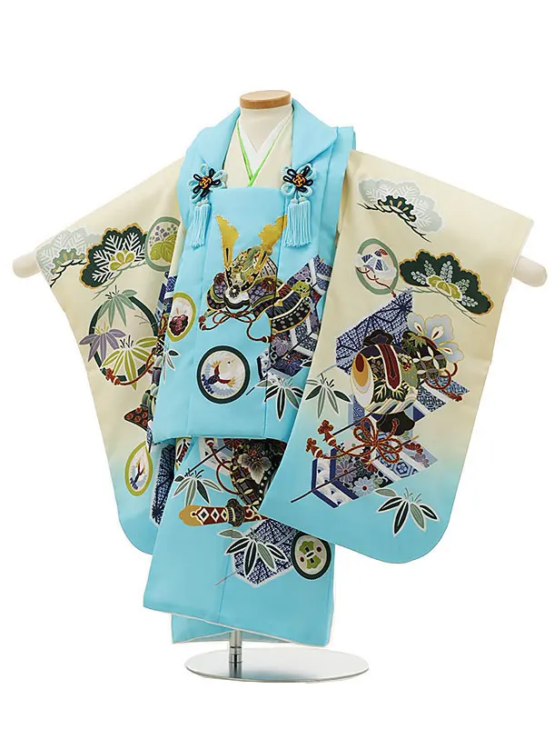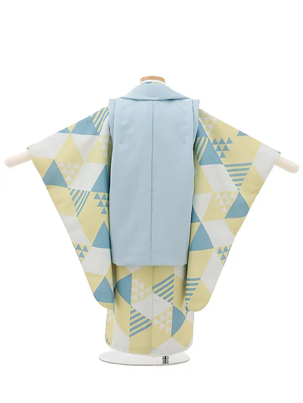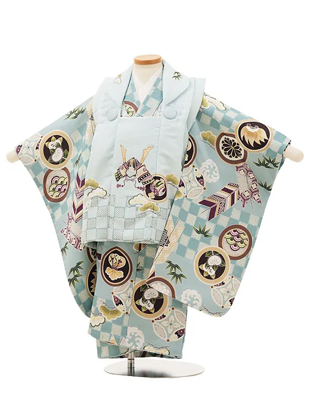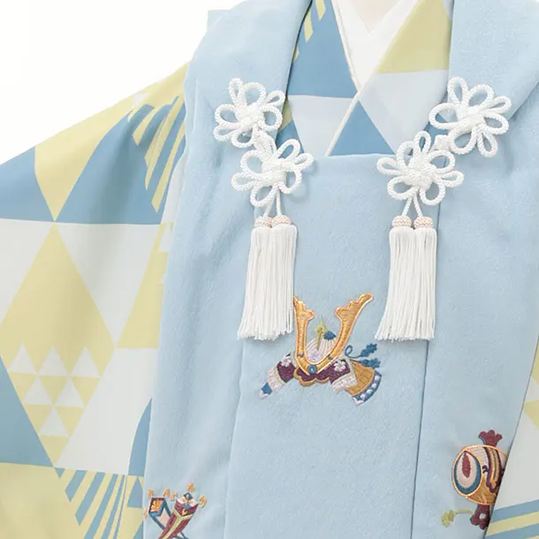 七五三レンタル(3歳男児被布)W525 水色刺繍兜×幾何学模様
