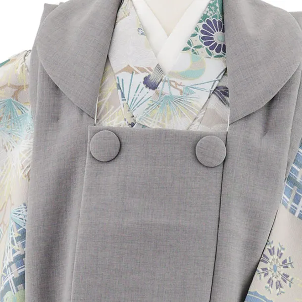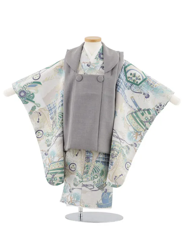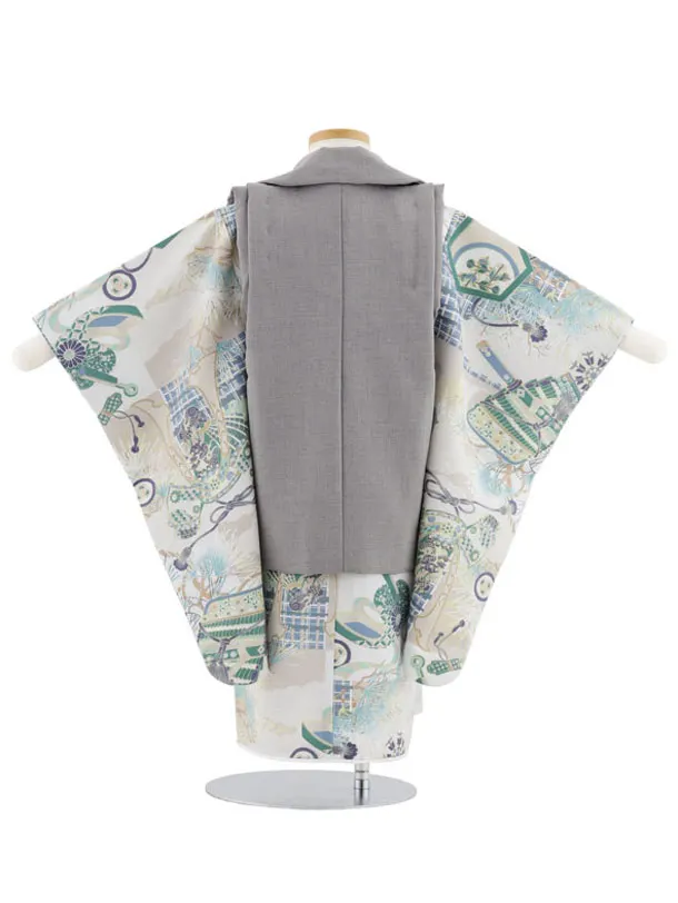 七五三レンタル(3歳男児被布)W529 グレー×グレー兜に松