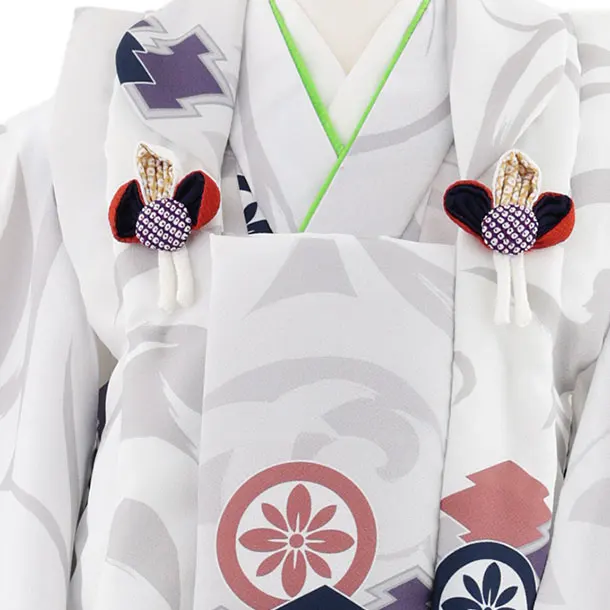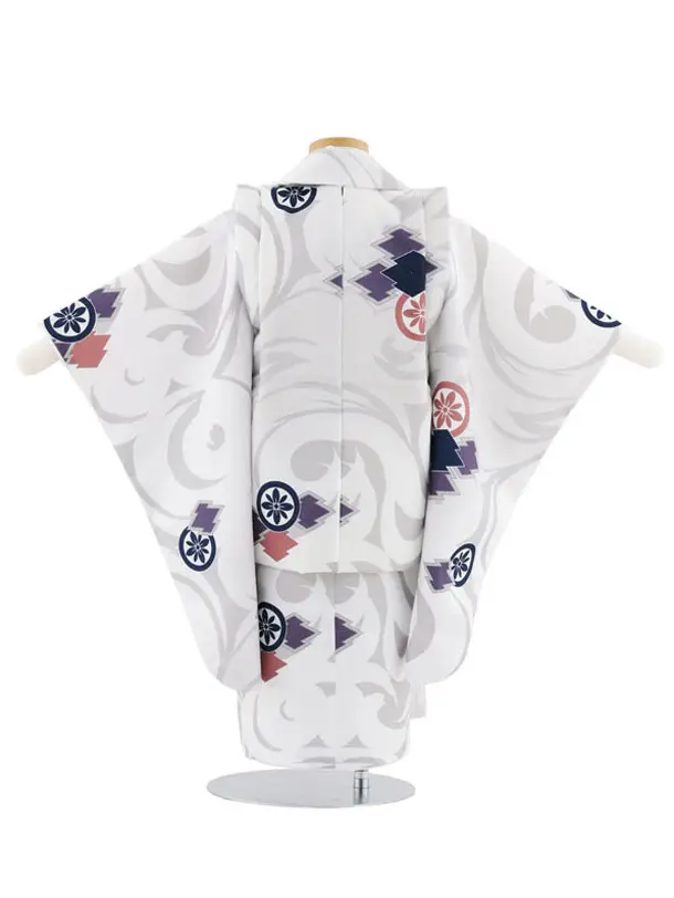 七五三レンタル(3歳男児被布)W531 白×グレー 松皮菱に丸紋