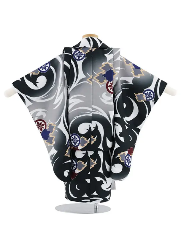 七五三レンタル(3歳男児被布)W534 白×黒 松皮菱に丸紋