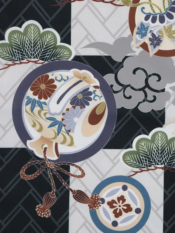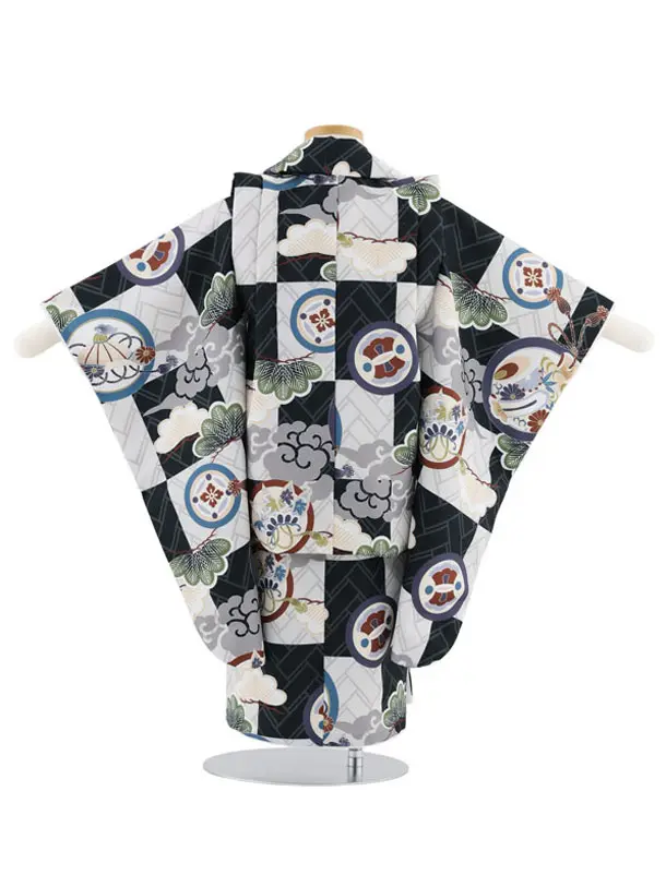 七五三レンタル(3歳男児被布)W537 グレー 宝尽くし丸紋