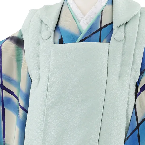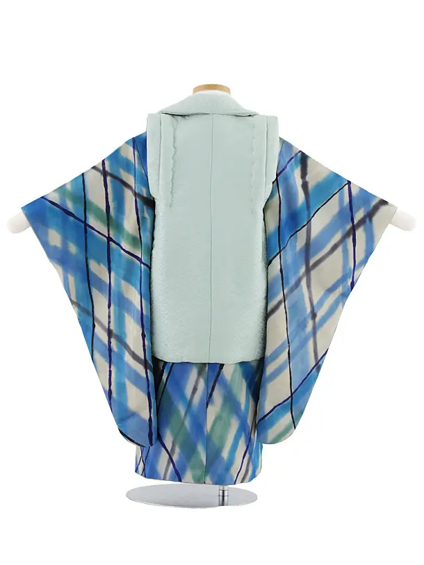 七五三レンタル(3歳男児被布)W550【正絹】ヒワ色×ブルーグレーチェック