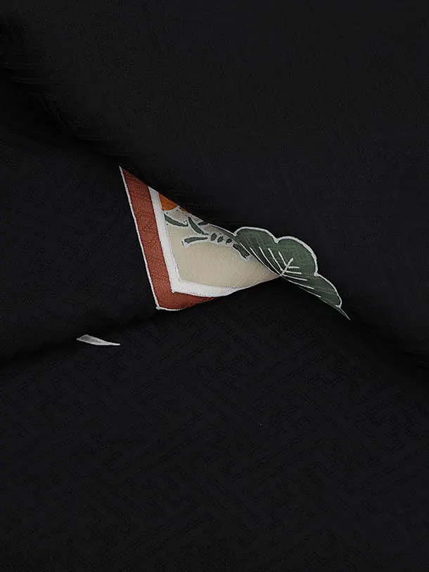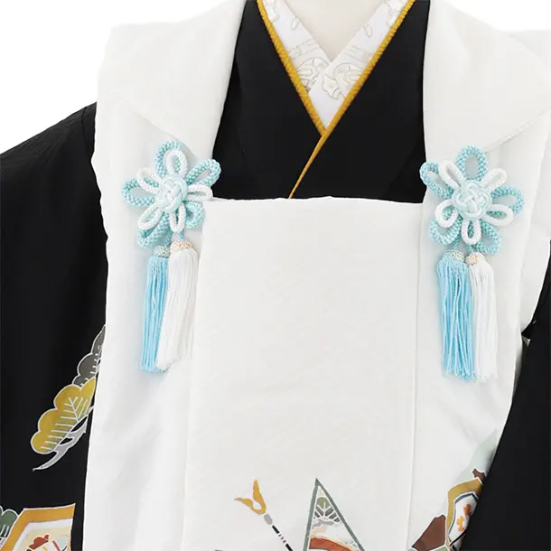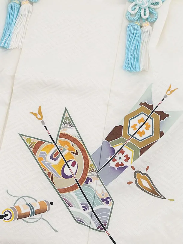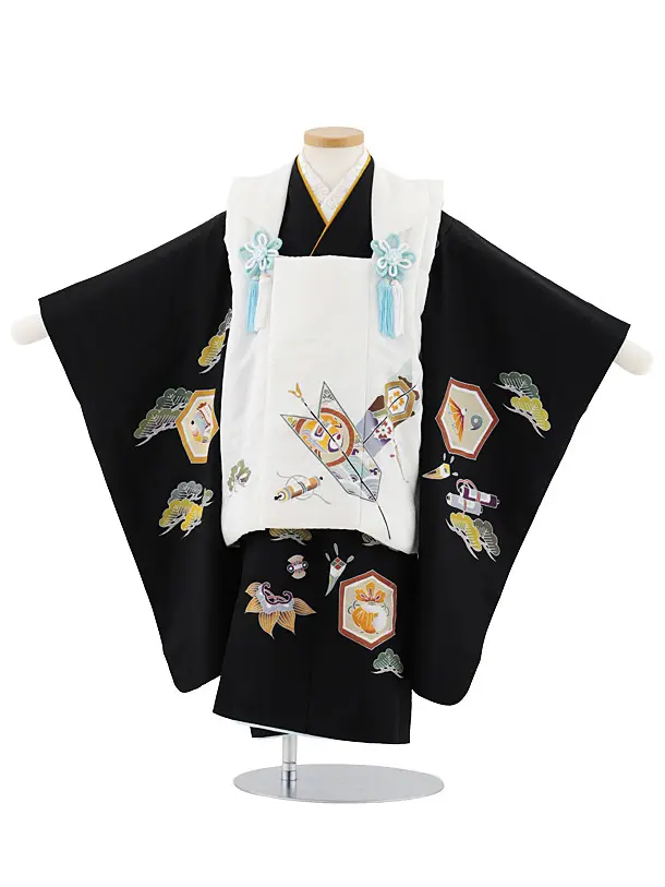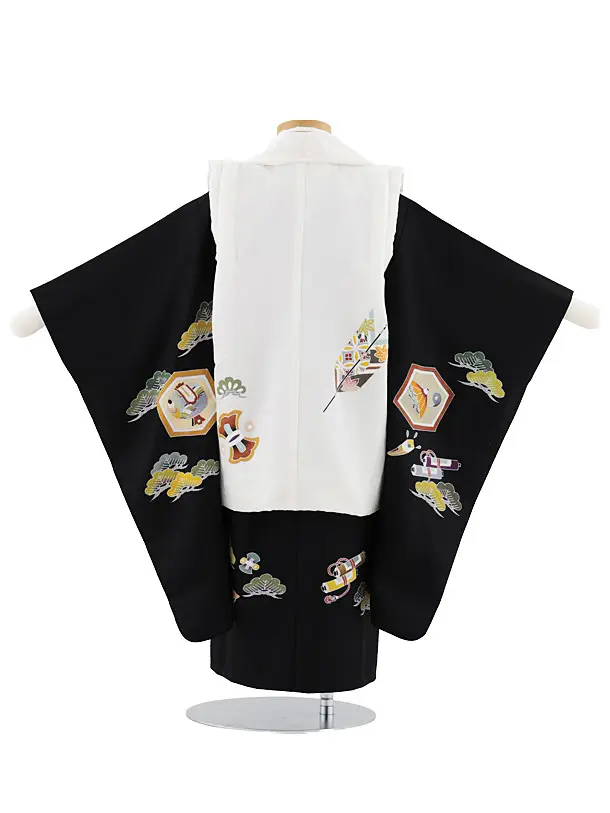七五三レンタル(3歳男児被布)W553【正絹】白地矢羽根×黒地 吉祥文様