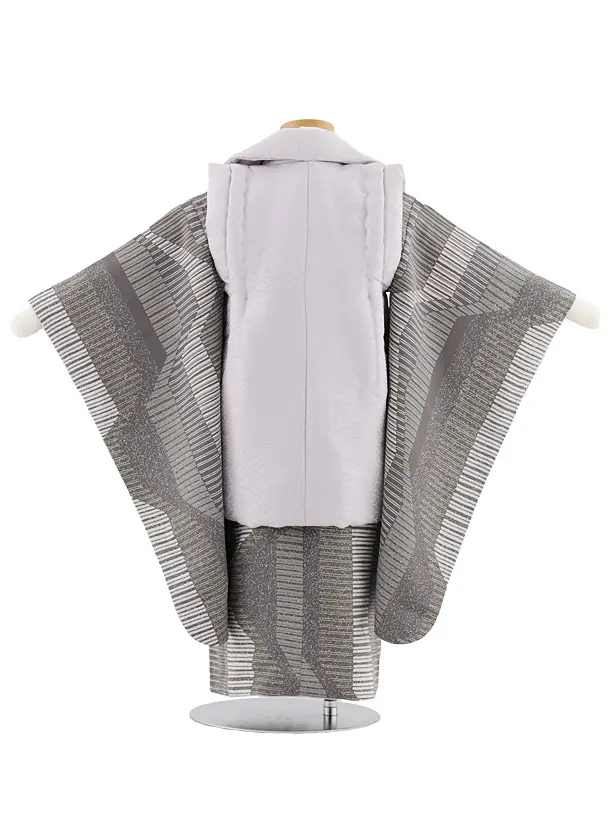 七五三レンタル(3歳男児被布)W556【正絹】ピンクグレー×グレー幾何学模様