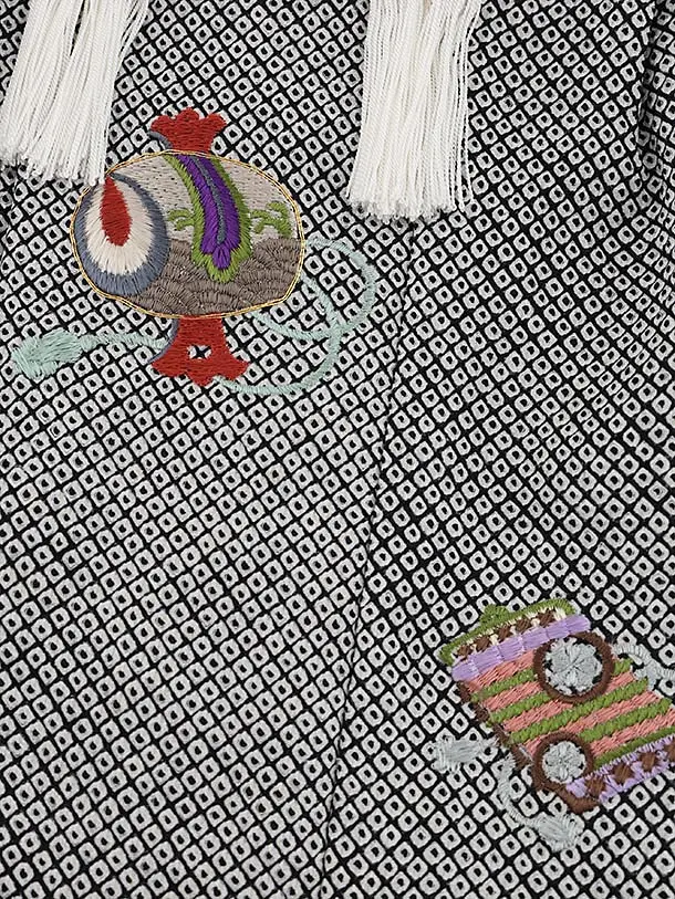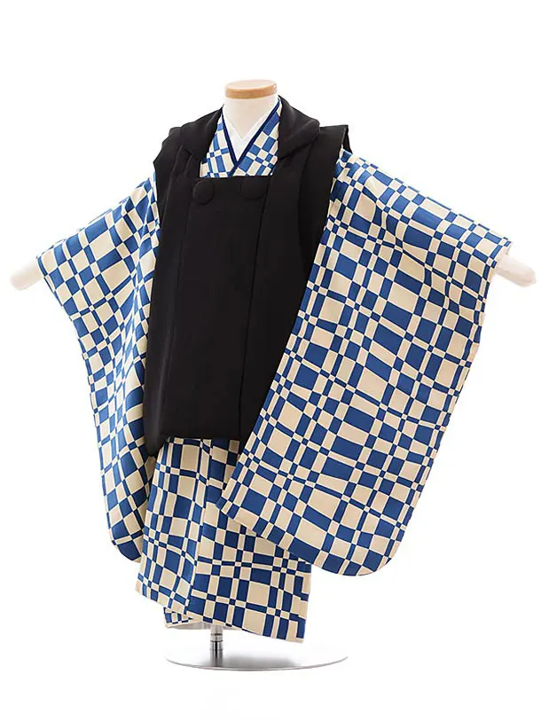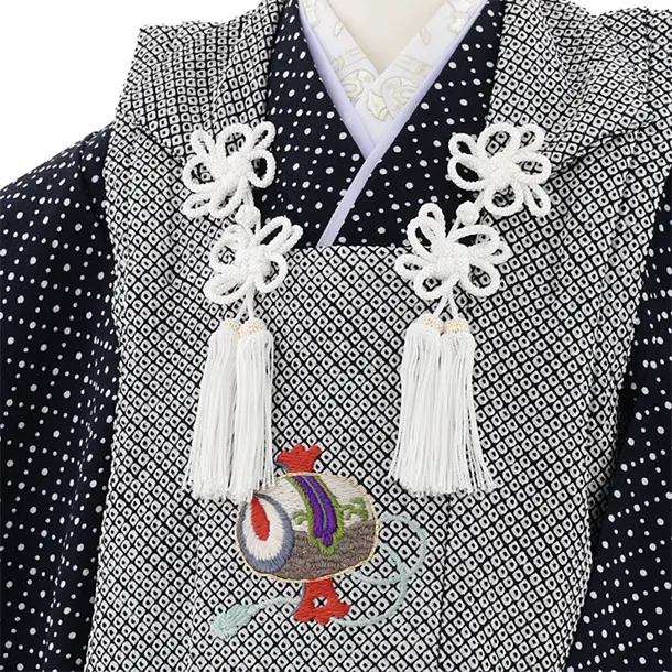 七五三レンタル(3歳男児被布)W559【正絹】黒疋田柄 刺繍小槌×紺地ドット
