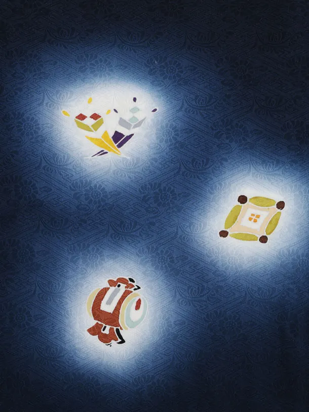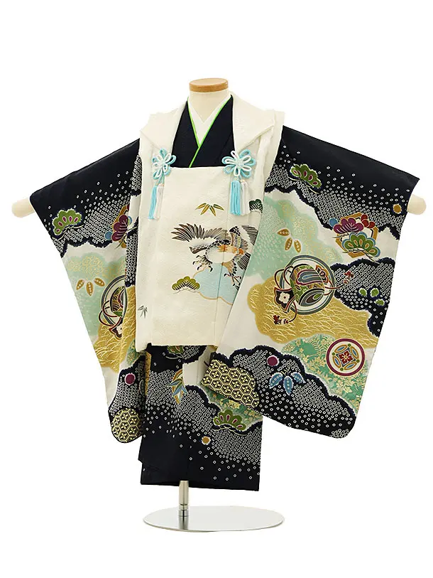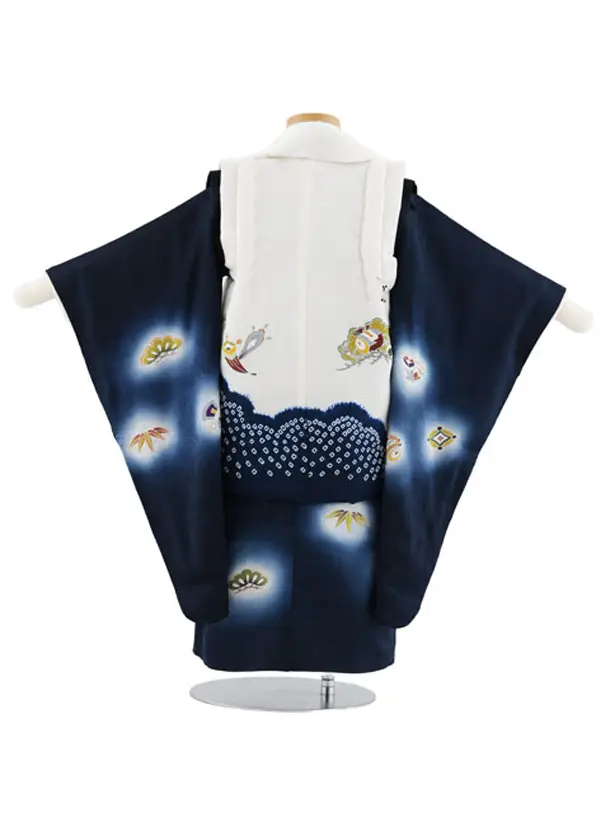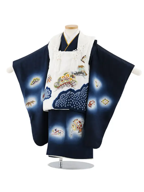七五三レンタル(3歳男児被布)W568【正絹】白×紺地ぼかし 宝尽くし