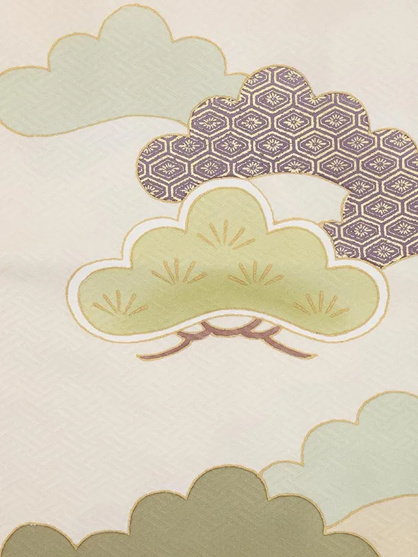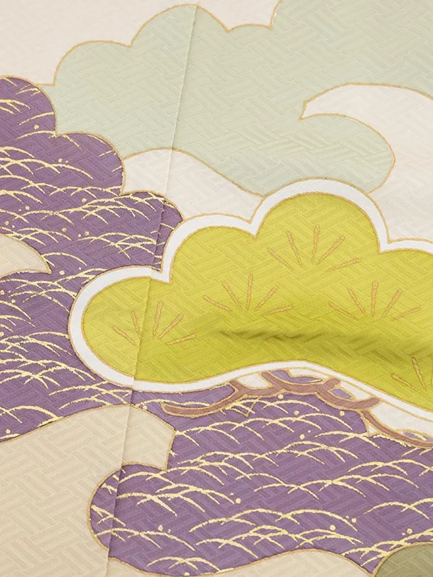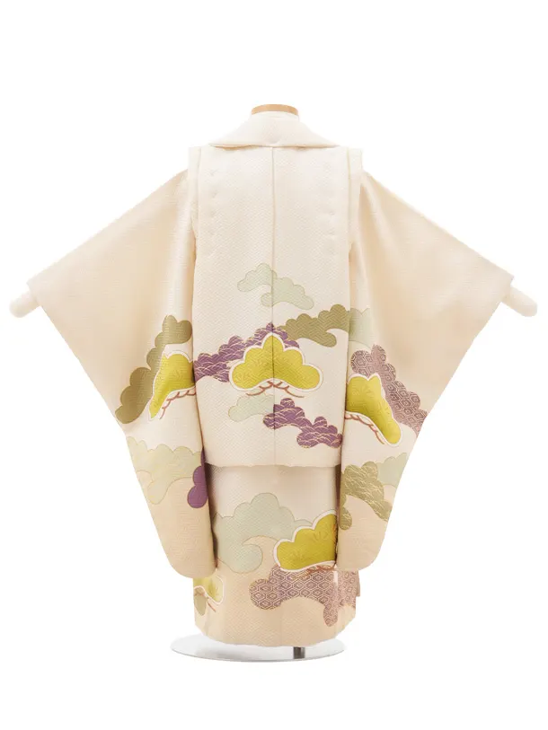 七五三(3歳男児被布)W589【正絹】藤井寛 ライトベージュ 松