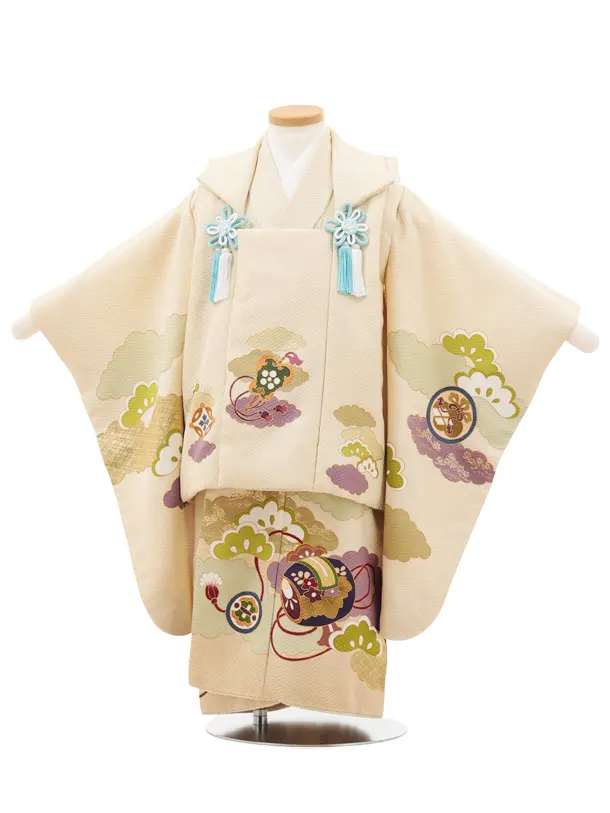 七五三(3歳男児被布)W590【正絹】藤井寛クリームベージュ 吉祥文様