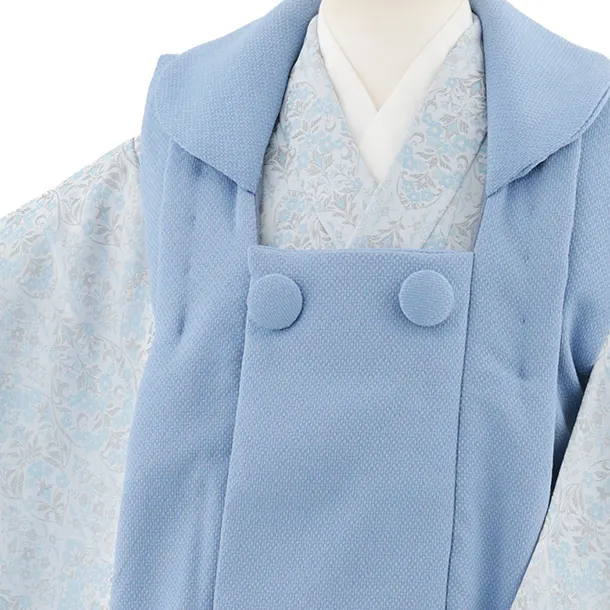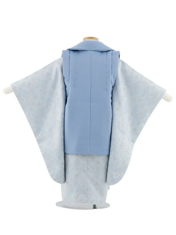 七五三レンタル(3歳男児被布)W592 水色×ブルーグレー ダマスク柄