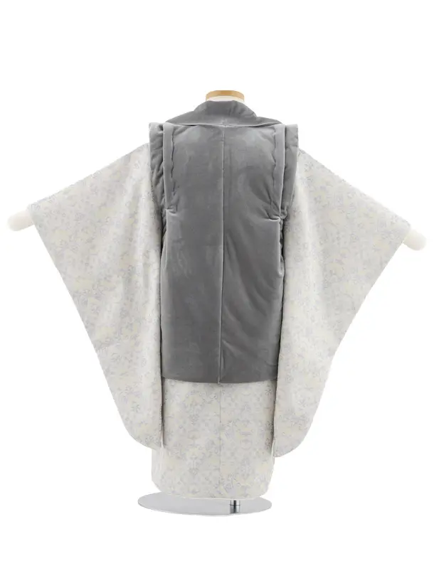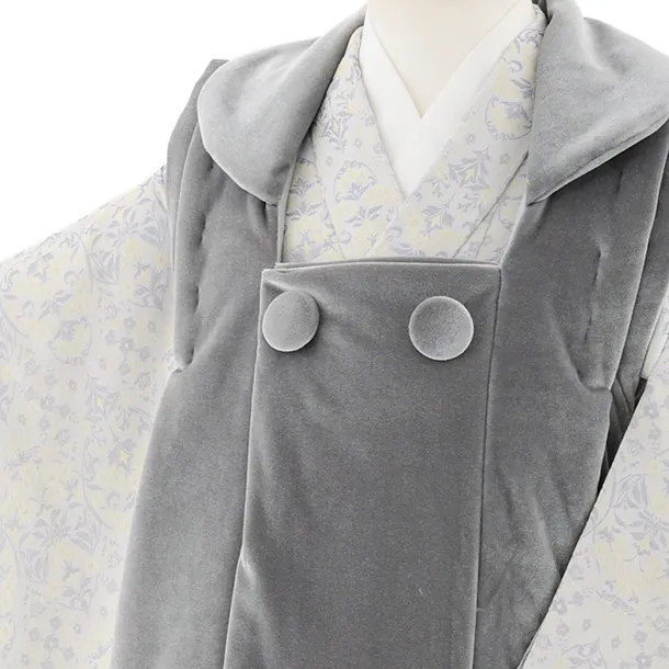 七五三レンタル(3歳男児被布)W593 グレーベルベット×グレー ダマスク柄