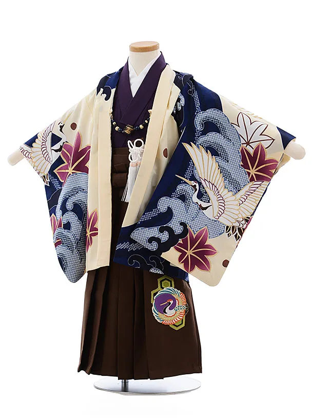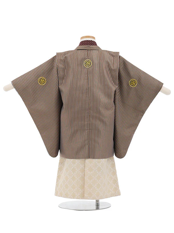 かんたん七五三(3歳男袴)W597 ブラウン紋付×ベージュゴールド