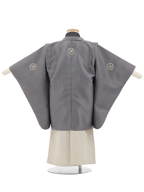 かんたん七五三(3歳男袴)W598 グレーパープル格子紋付×ベージュシルバー