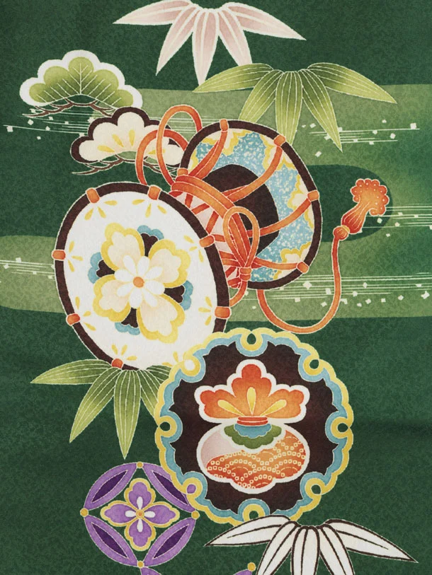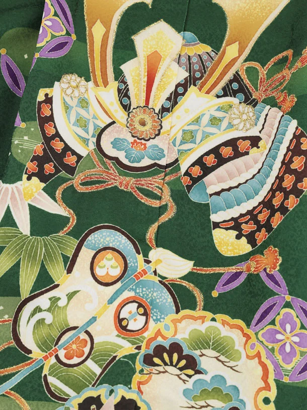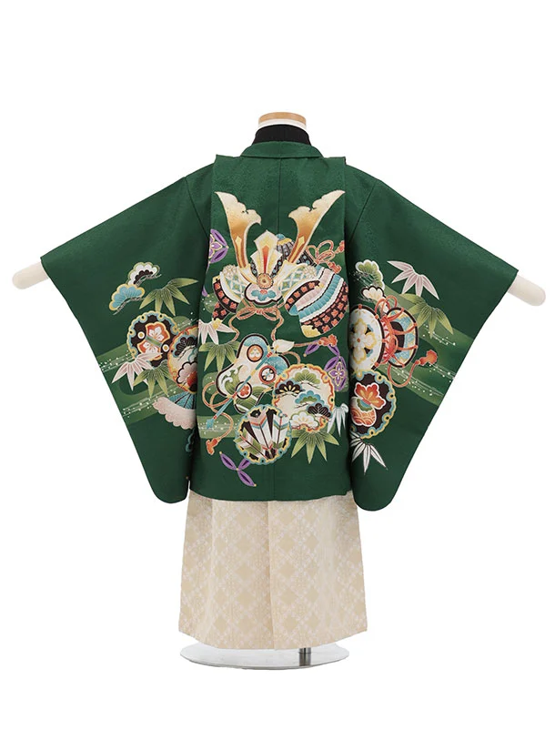 かんたん七五三(3歳男袴)W603 緑 吉祥文様兜×ベージュゴールド