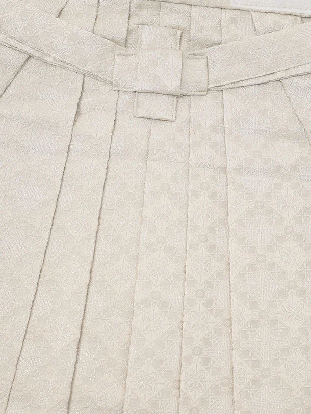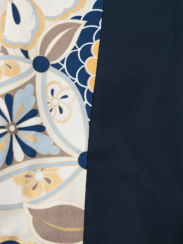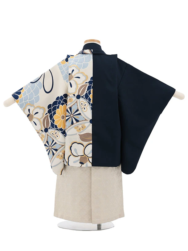 かんたん(3.4歳男児袴)W616 薄ベージュ 菊椿 片身替り×ベージュラメ
