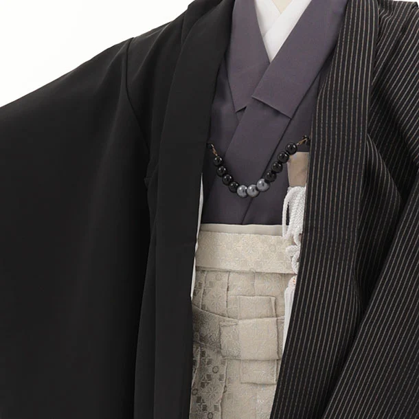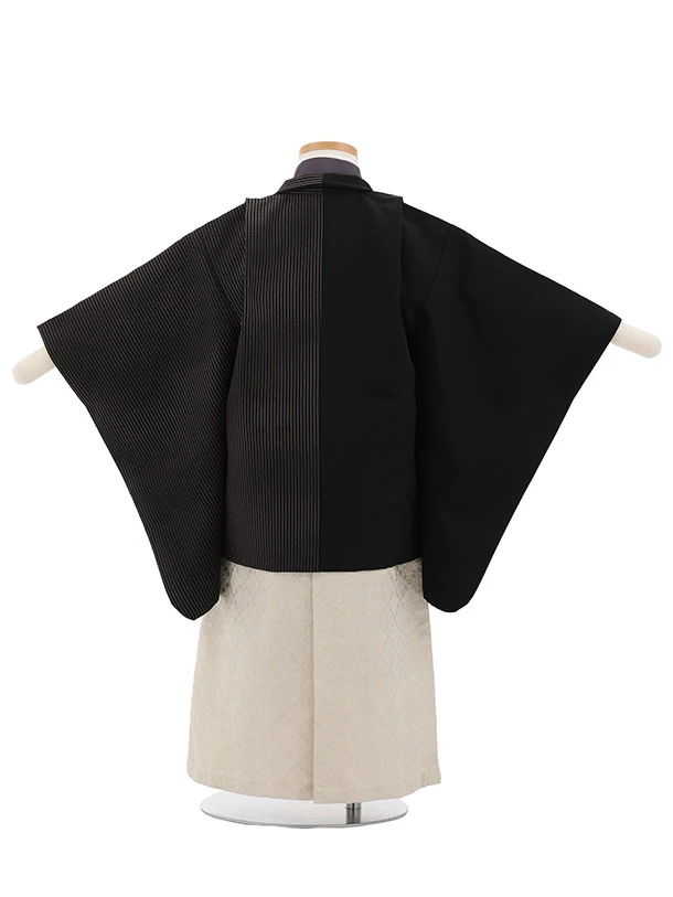 かんたん(3.4歳男児袴)W617 黒ストライプ 片身替り×ベージュラメ