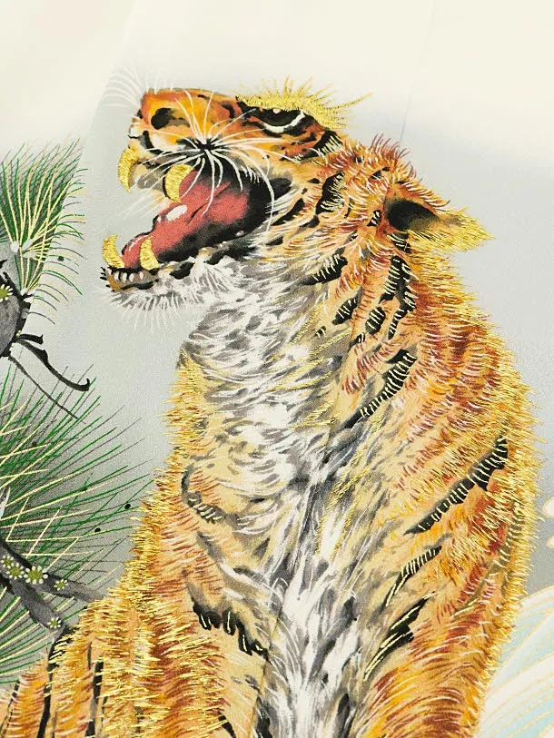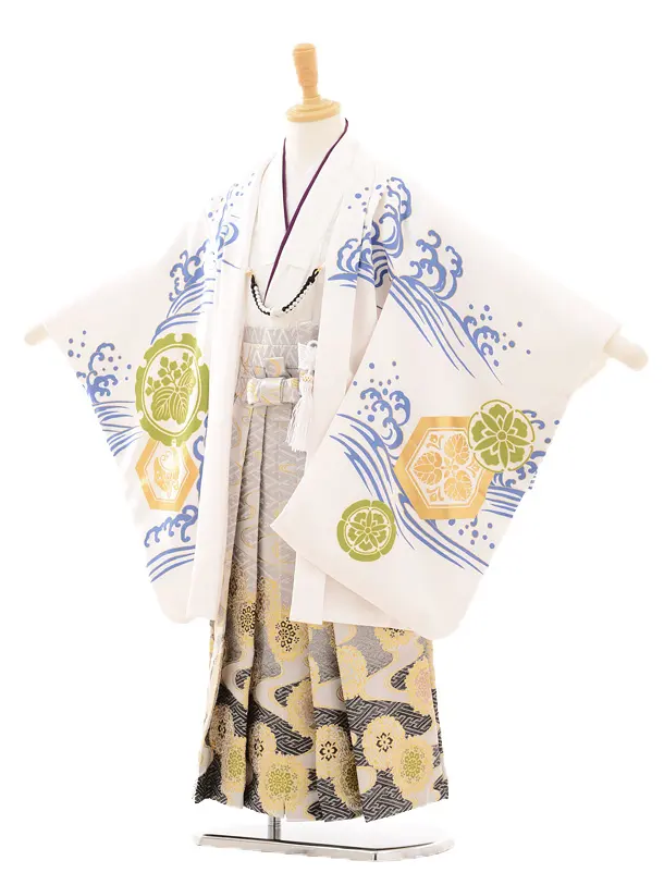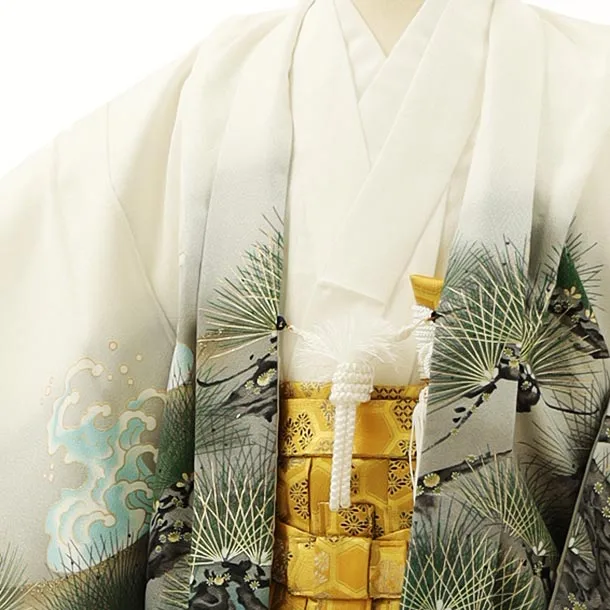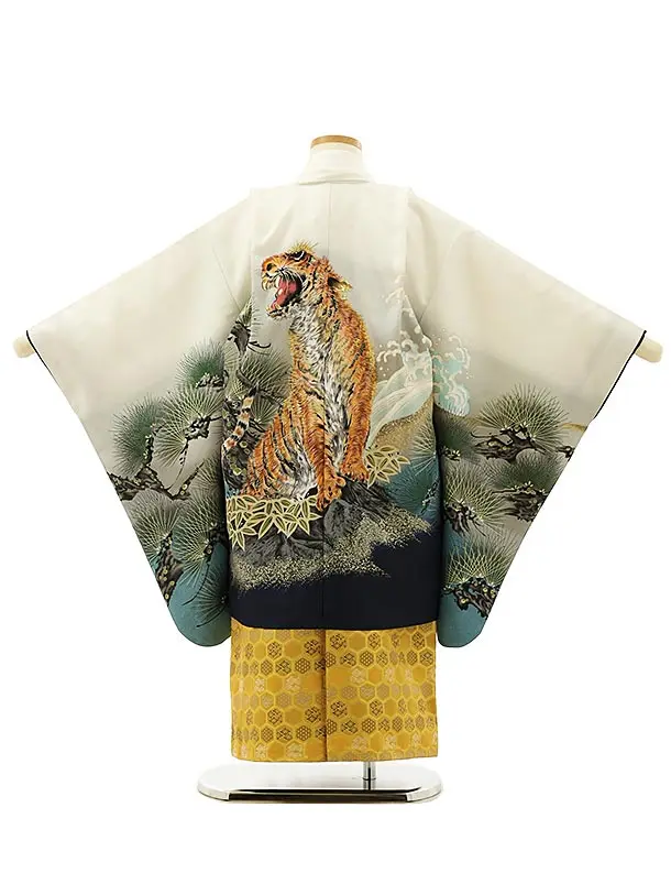 かんたん七五三レンタル(5歳男袴)X001白地松虎×ゴールド袴