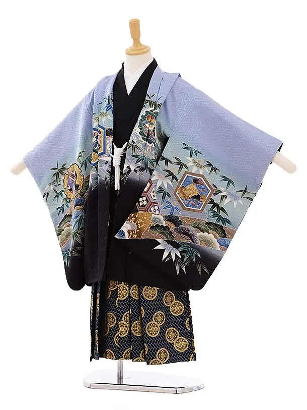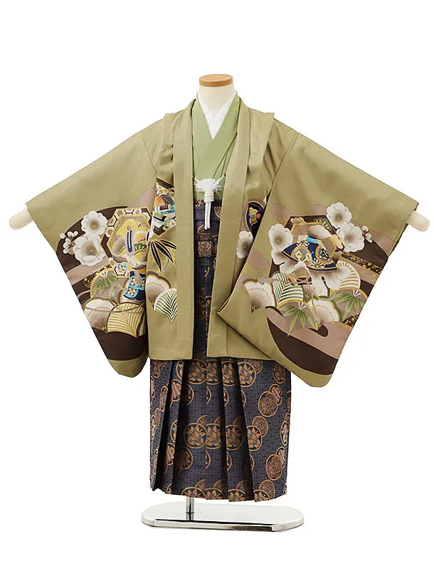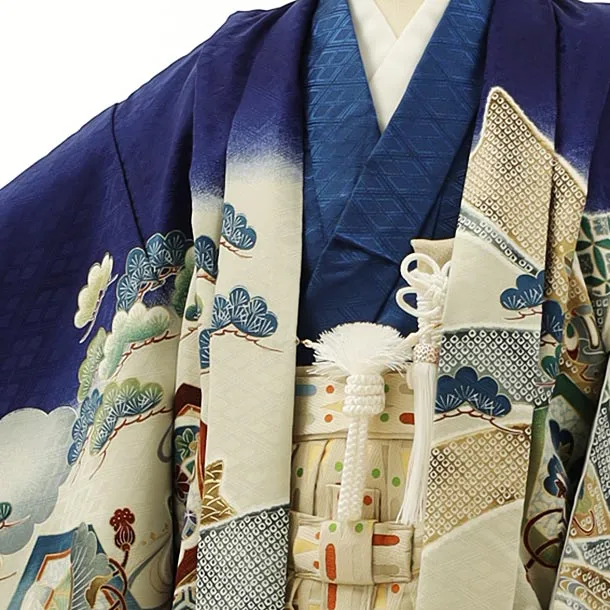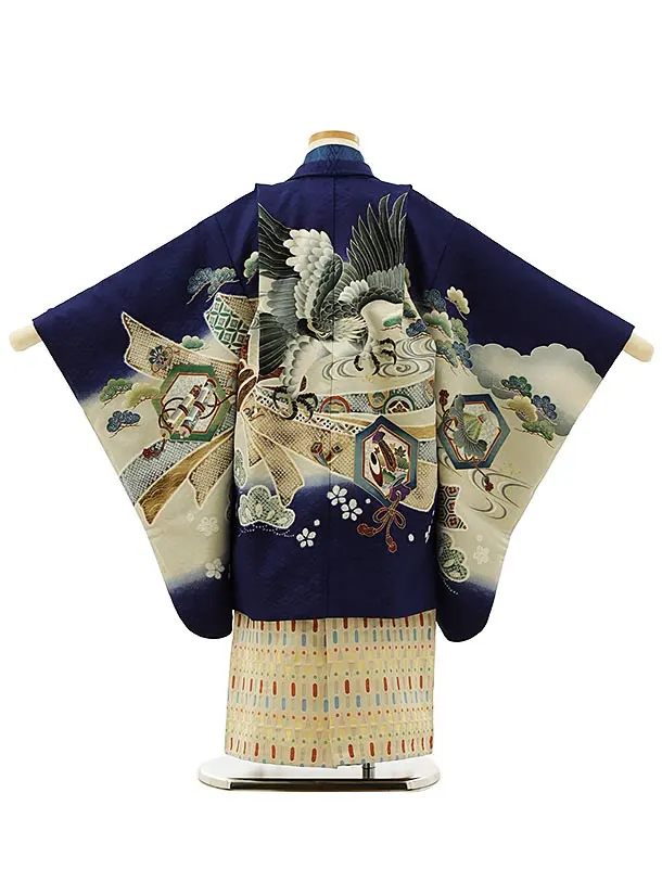 かんたん七五三レンタル(5歳男袴)X002紺地束ね熨斗鷹×ベージュ多色袴