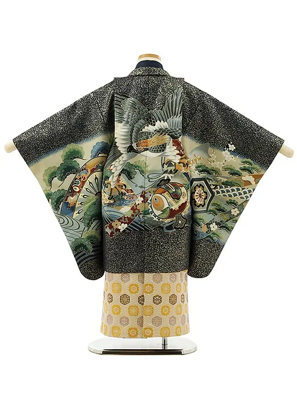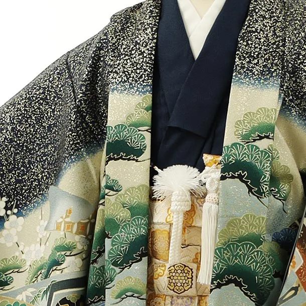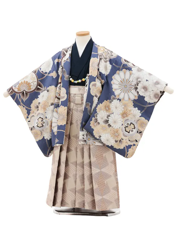 かんたん七五三レンタル(5歳男袴)X006紺地金霜降り鼓鷹×ゴールド袴