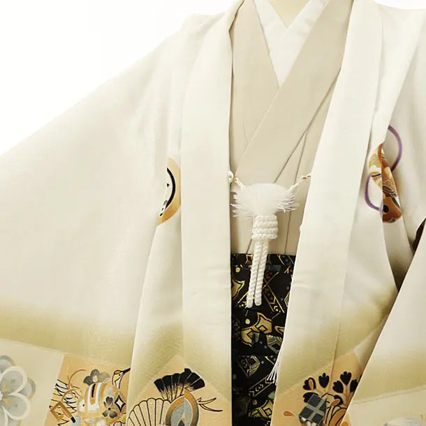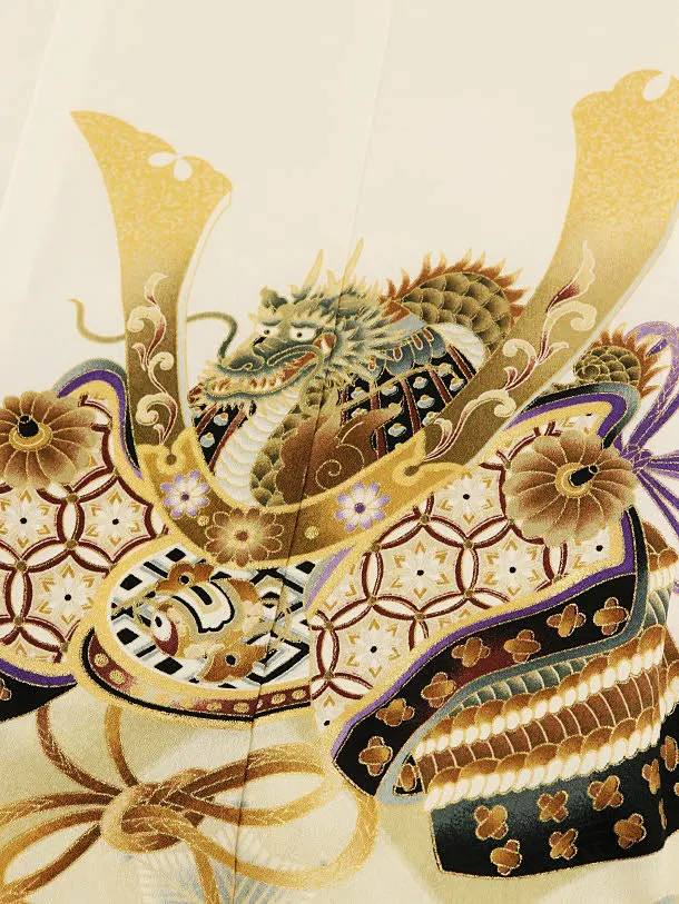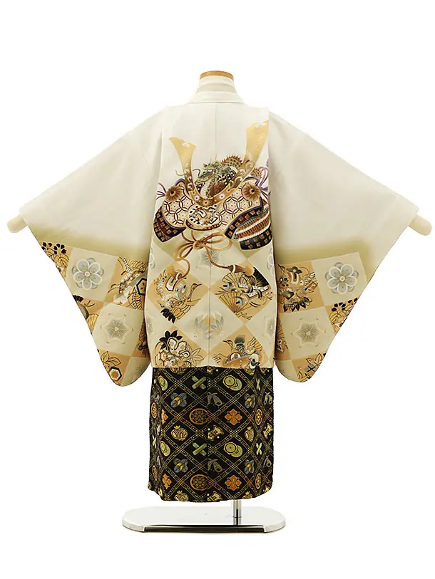 かんたん七五三レンタル(5歳男袴)X026白地菱に兜x黒菱袴