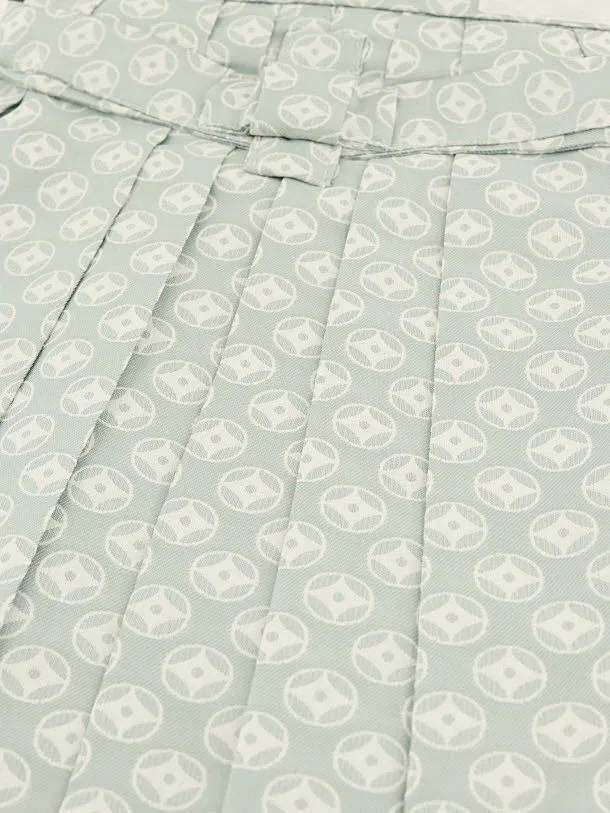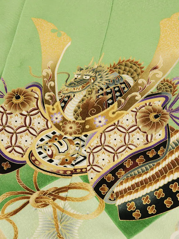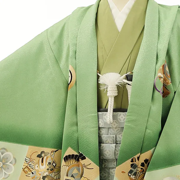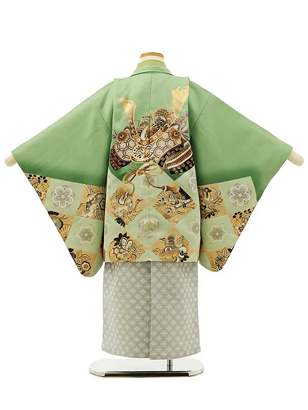 かんたん七五三レンタル(5歳男袴)X033グリーン菱に兜x水色袴