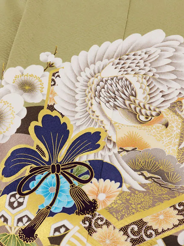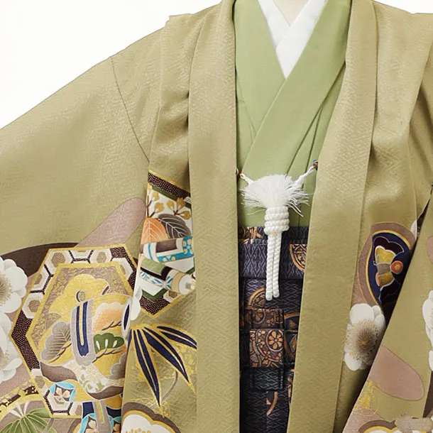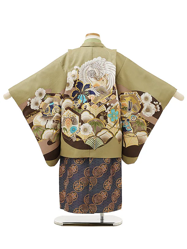 かんたん七五三レンタル(5歳男袴)X039グリーン松竹梅鷹x紺丸紋袴