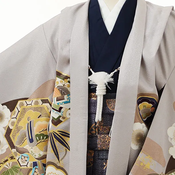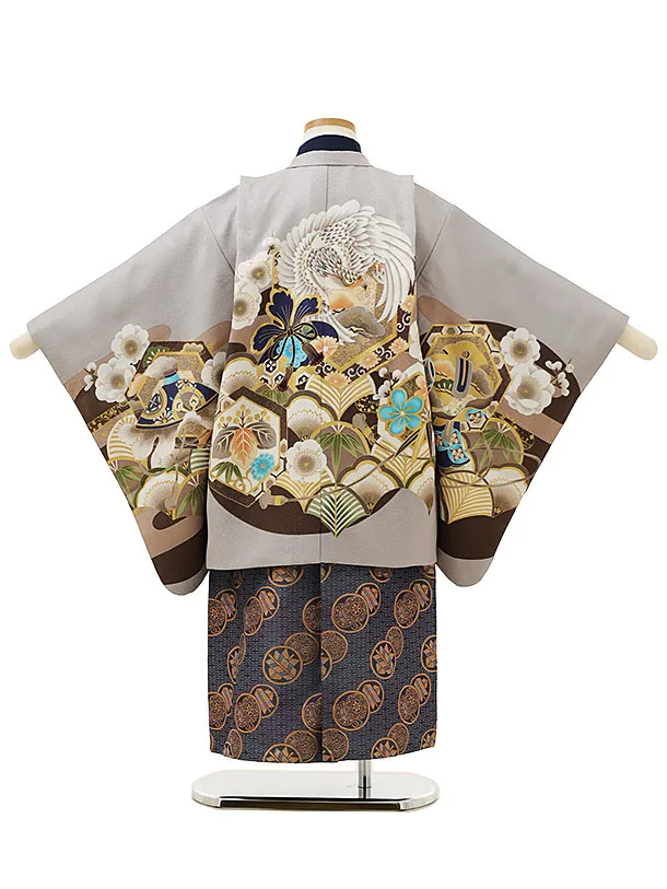 かんたん七五三レンタル(5歳男袴)X040グレー松竹梅鷹x紺丸紋袴
