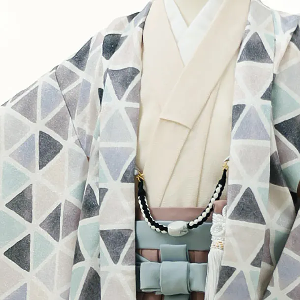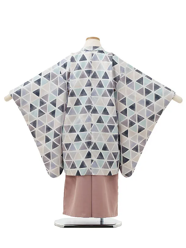 七五三レンタル(5歳男袴)X043ペールグレーうろこxピンク袴