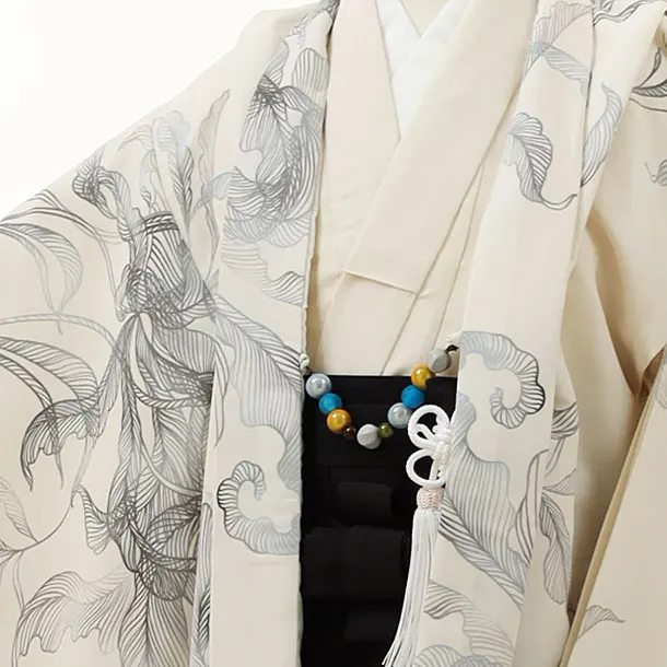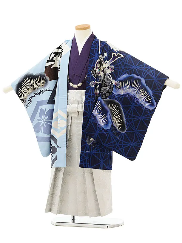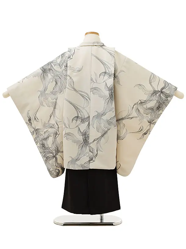 七五三レンタル(5歳男袴)X053アイボリー洋花x黒袴
