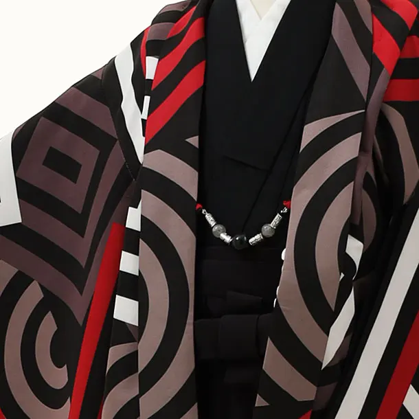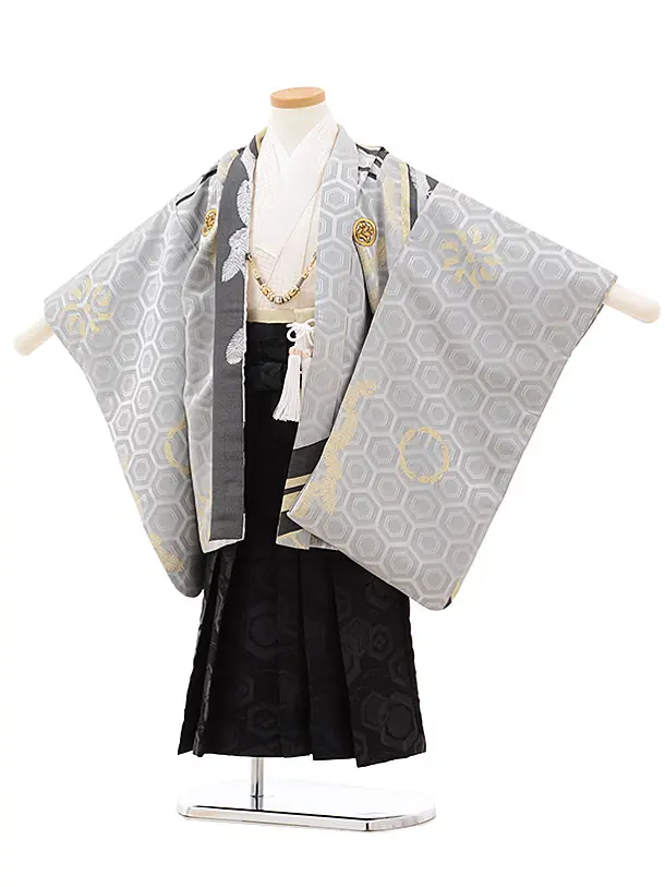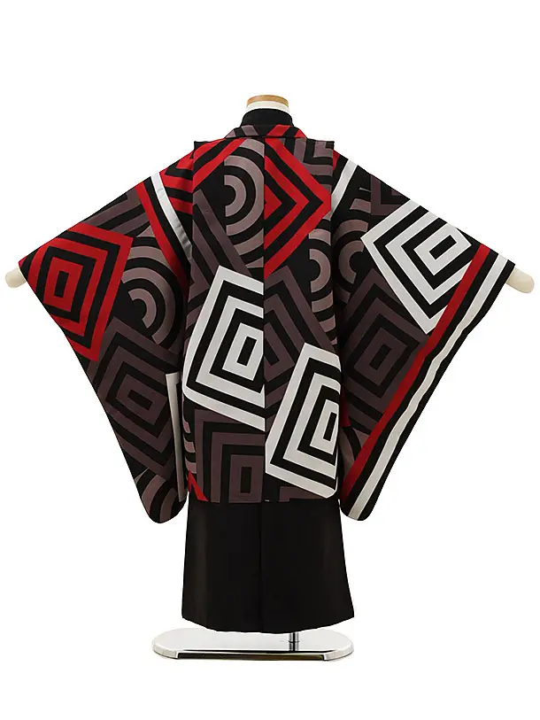 七五三レンタル(5歳男袴)X059黒地幾何学x黒袴