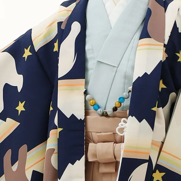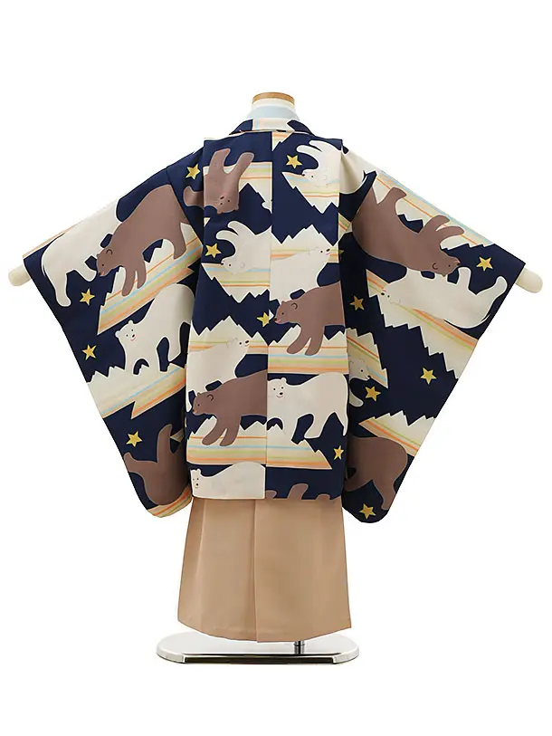 七五三レンタル(5歳男袴)X061紺地くまxベージュ袴
