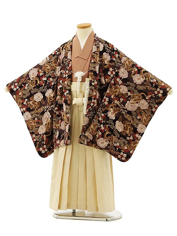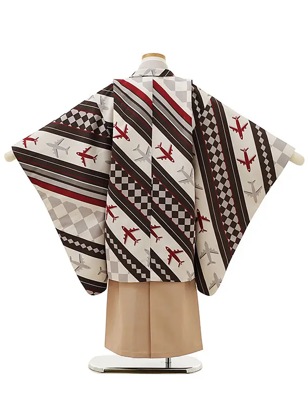 七五三レンタル(5歳男袴)X063ベージュ茶飛行機xベージュ袴