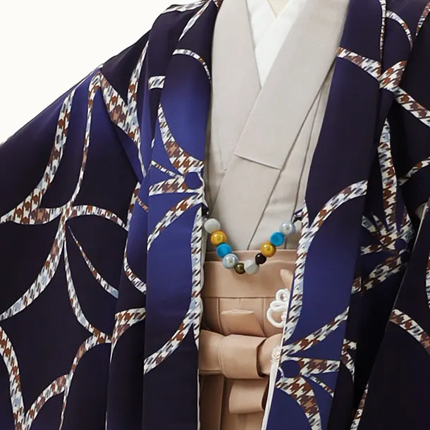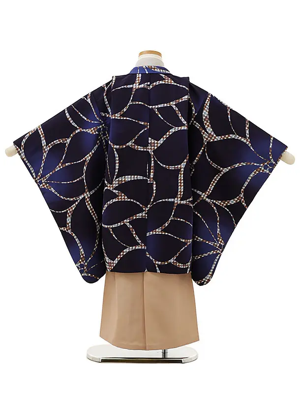 七五三レンタル(5歳男袴)X064紺大花xベージュ袴