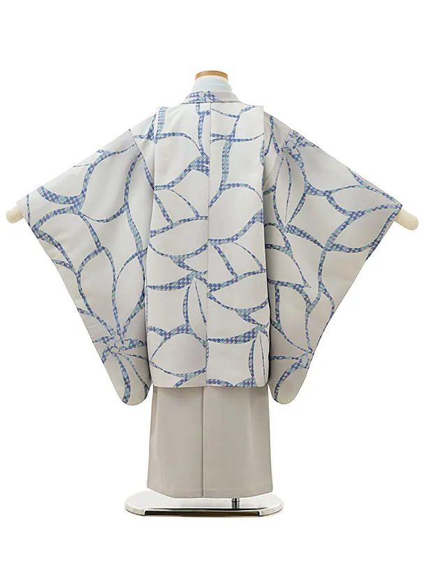 七五三レンタル(5歳男袴)X066グレー大花xグレー袴