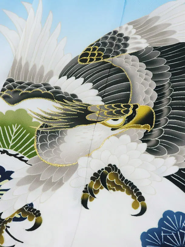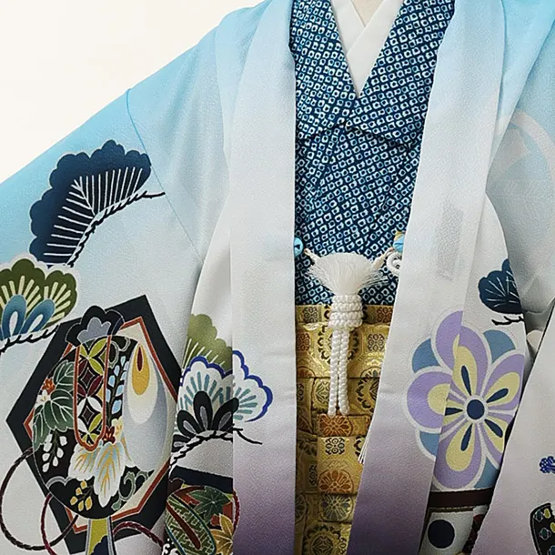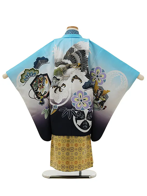 かんたん七五三レンタル(5歳男袴)X069水色松竹梅鷹xゴールド袴