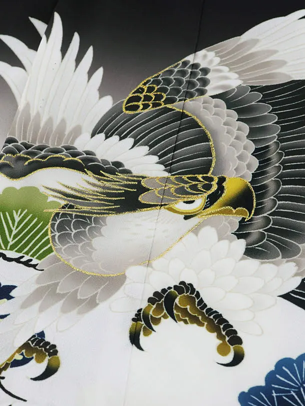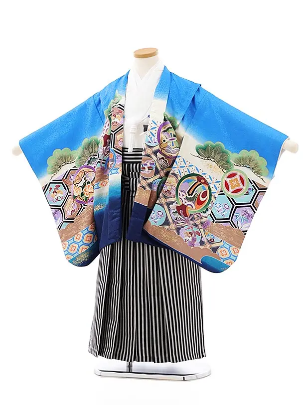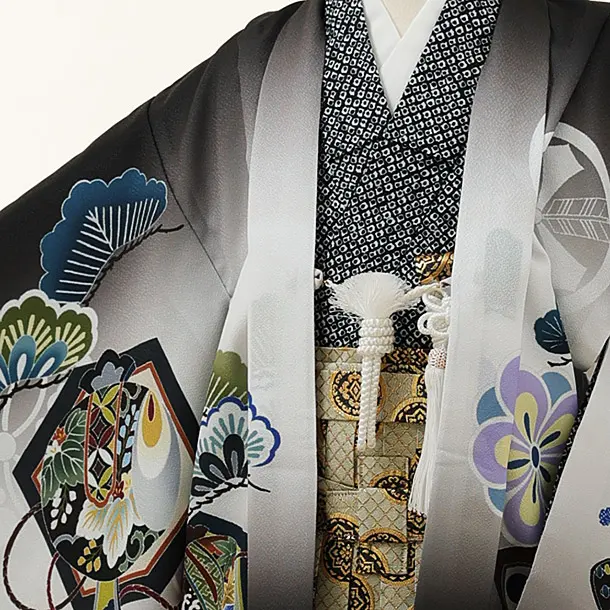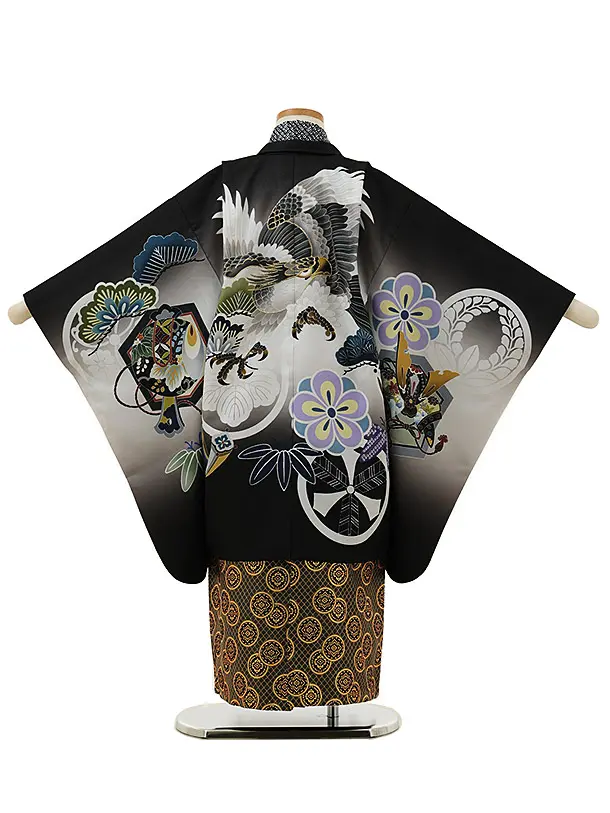 かんたん七五三レンタル(5歳男袴)X070黒ぼかし松竹梅鷹×ぼかし袴