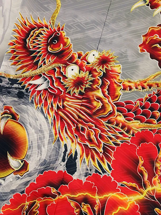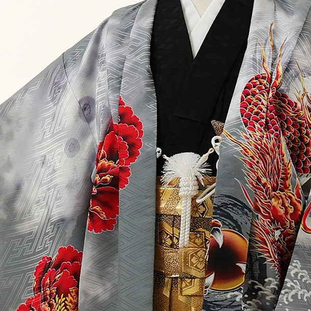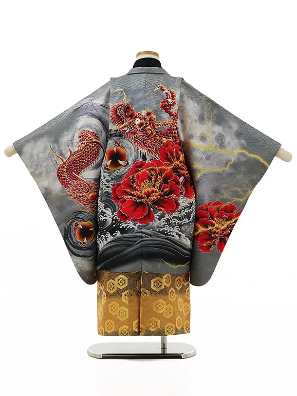 かんたん七五三レンタル(5歳男袴)X076グレーに龍×ゴールドぼかし袴