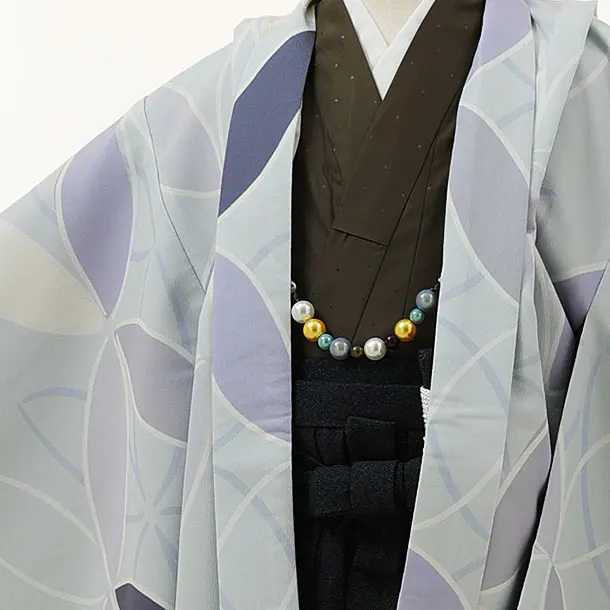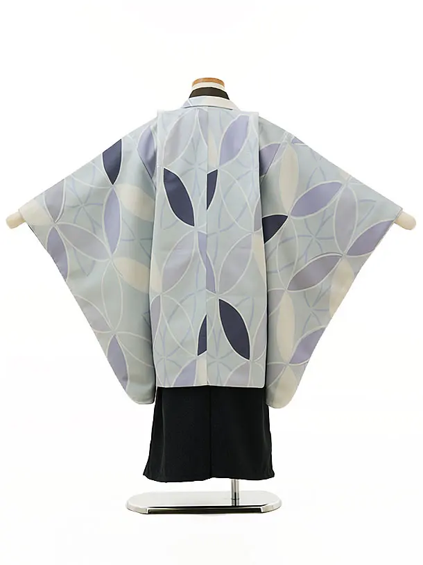 七五三レンタル(5歳男袴)X089ペールブルー変わり柄×ネービーデニム風袴