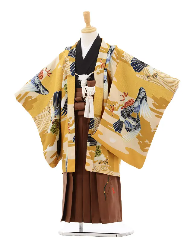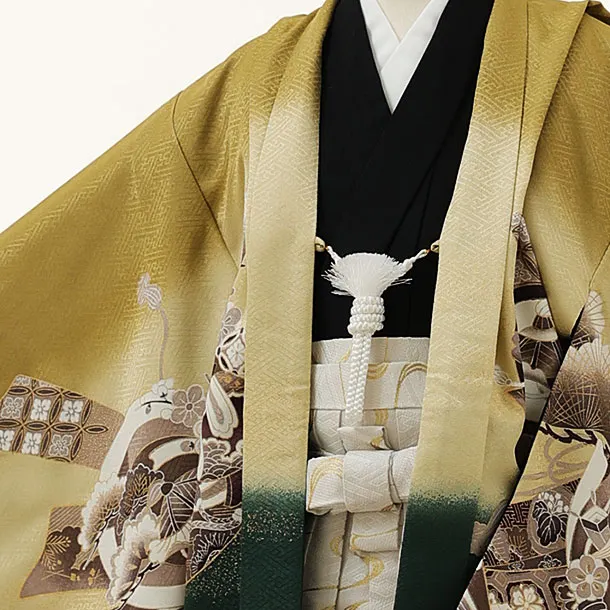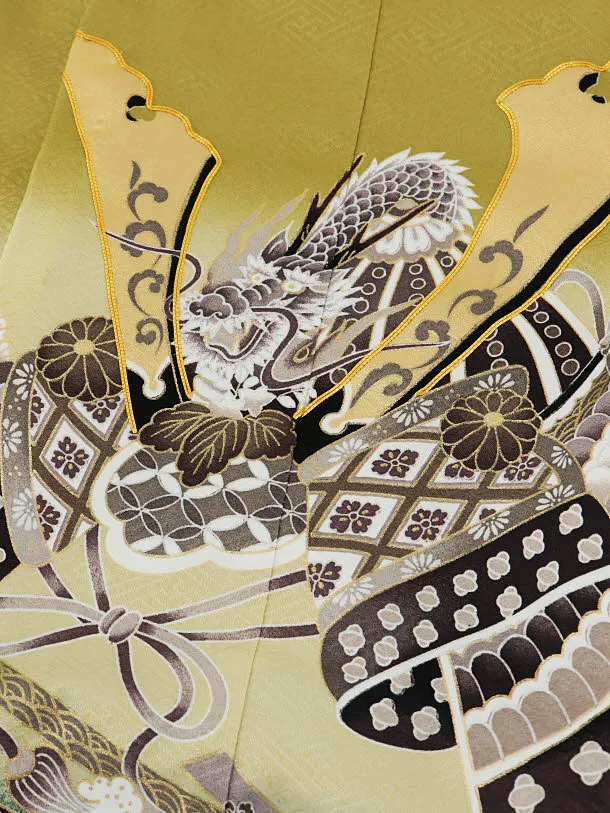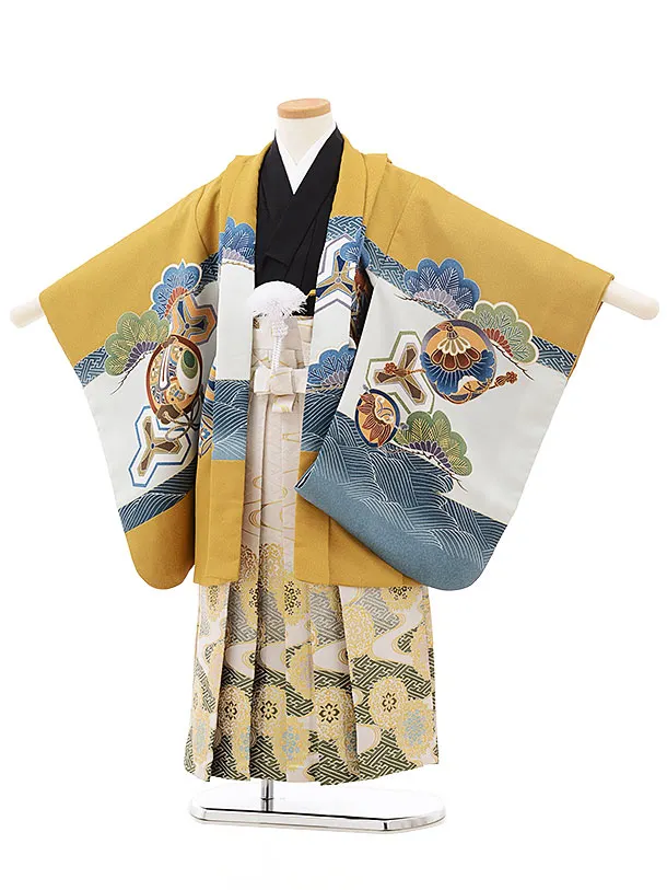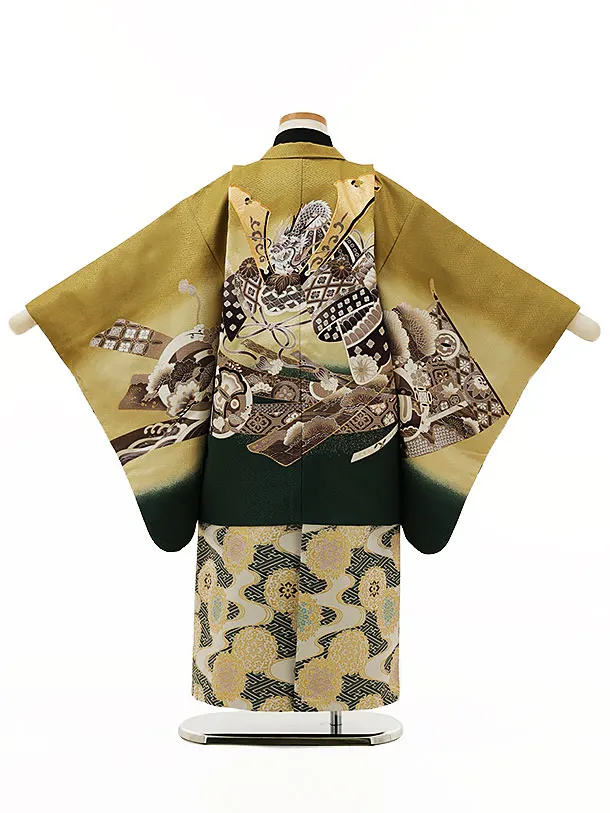 七五三レンタル(5歳男袴)X095からしグリーン几帳兜×白グリーンぼかし袴
