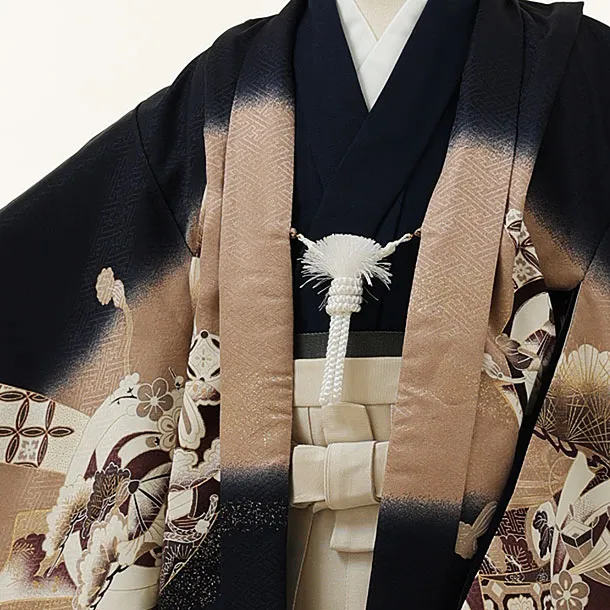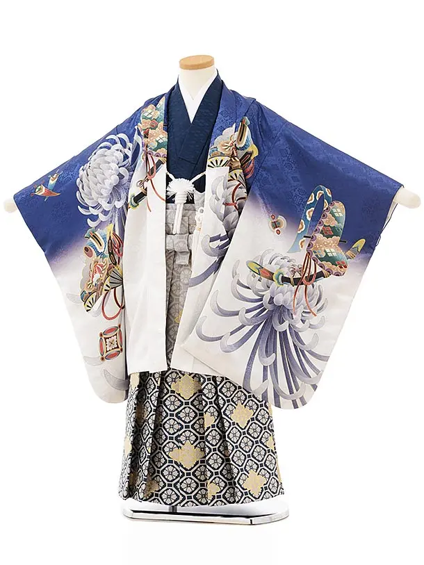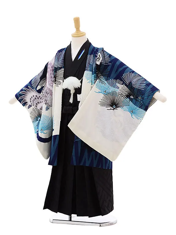 七五三レンタル(5歳男袴)X099紺ベージュ几帳鷹×アイボリー袴