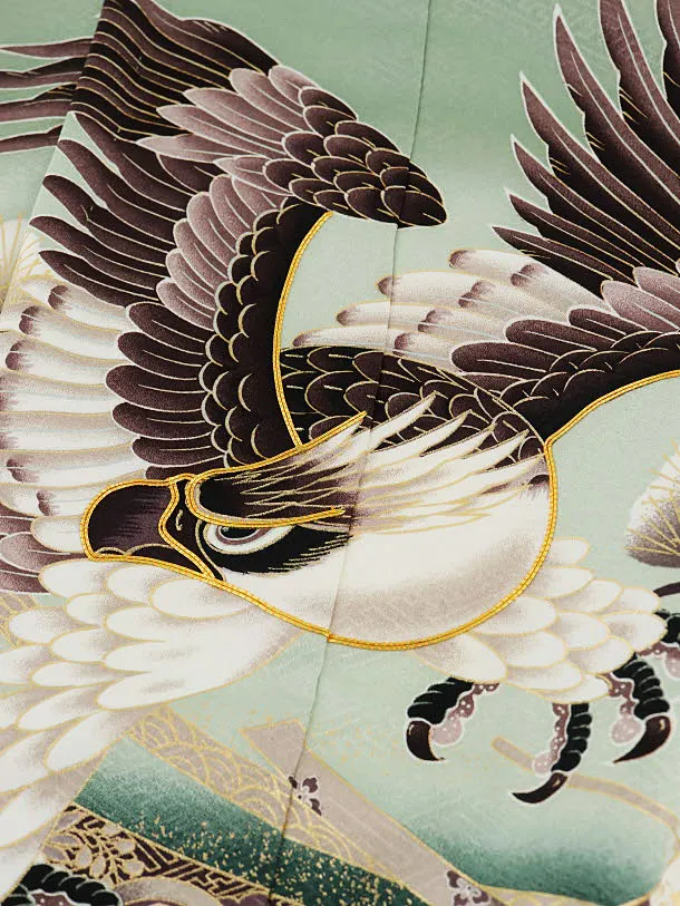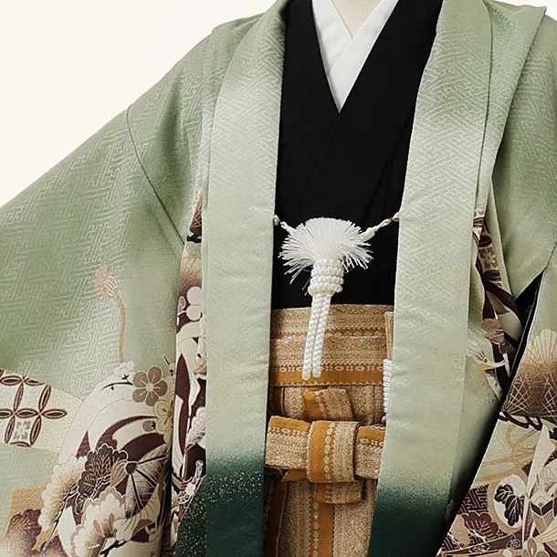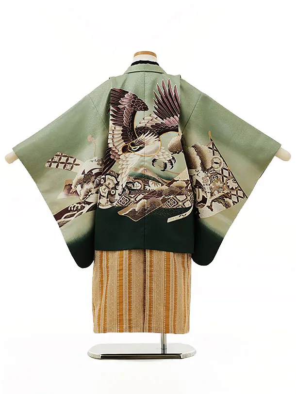 七五三レンタル(5歳男袴)X101グリーンぼかし几帳鷹×からしストライプ袴