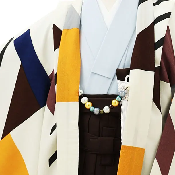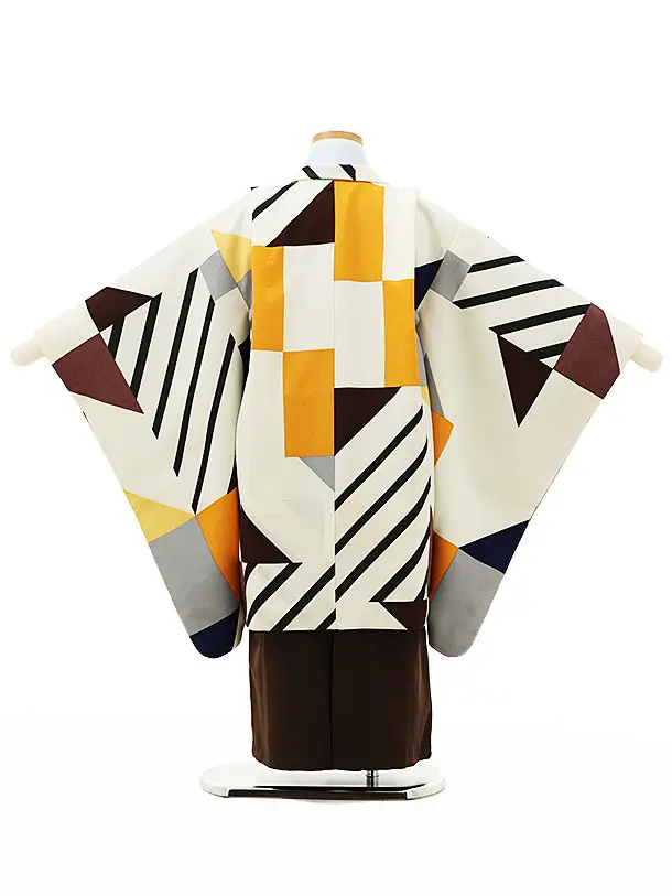 かんたん七五三レンタル(5歳男袴)X122クリーム幾何学模様xブラウン袴