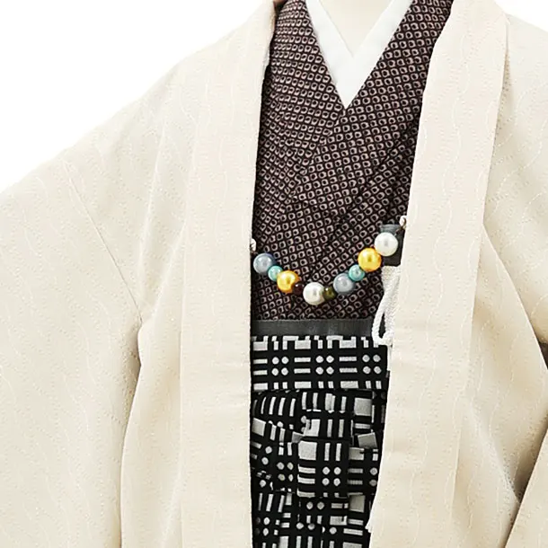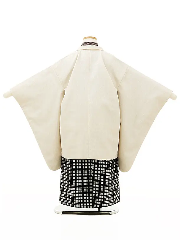 かんたん七五三レンタル(5歳男袴)X124うすベージュラメx黒格子袴