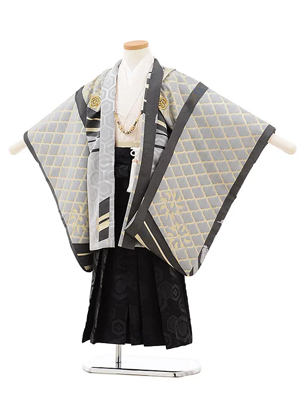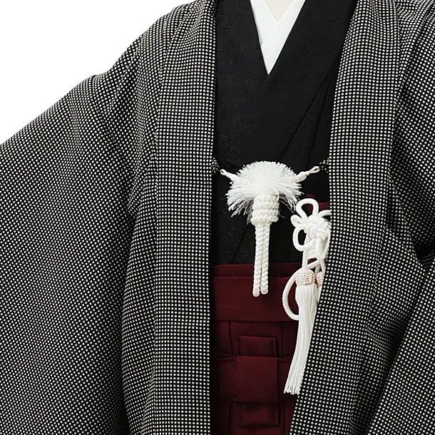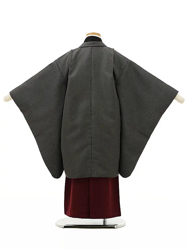 かんたん七五三レンタル(5歳男袴)X152黒格子xボルドー袴