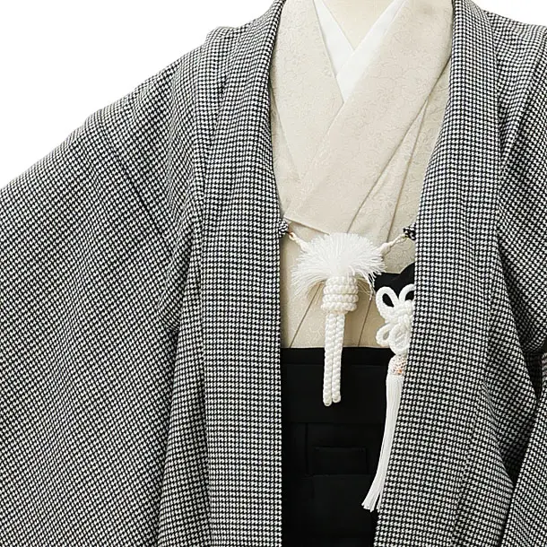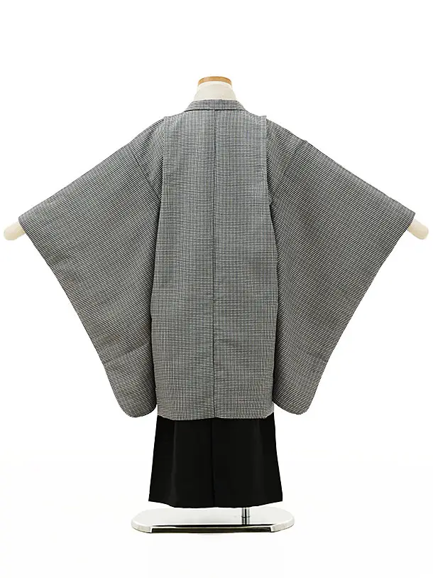 かんたん七五三レンタル(5歳男袴)X154紺千鳥格子x黒袴