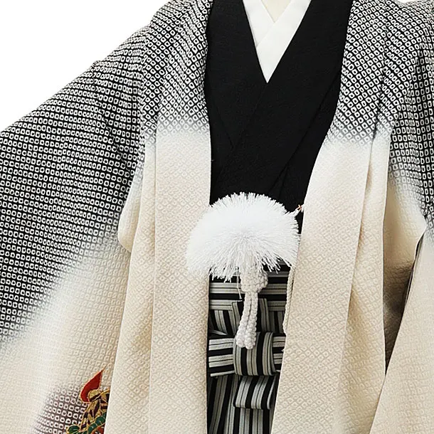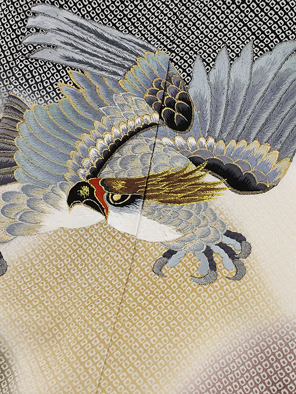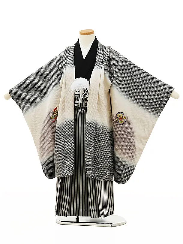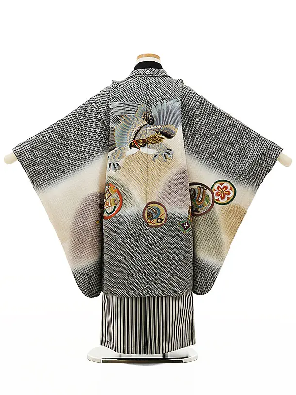 七五三レンタル(5歳男袴)X165【高級正絹】黒疋田柄刺繍鷹x黒縞袴