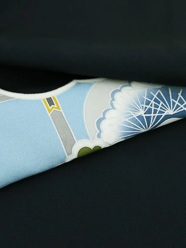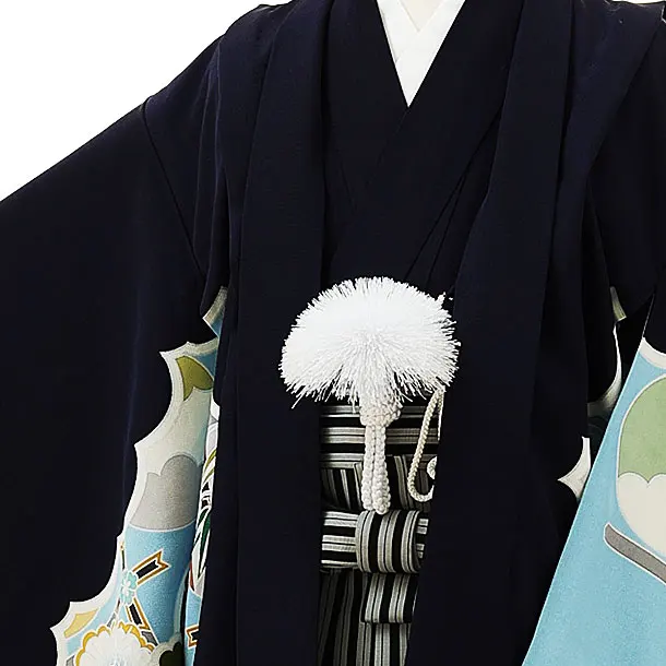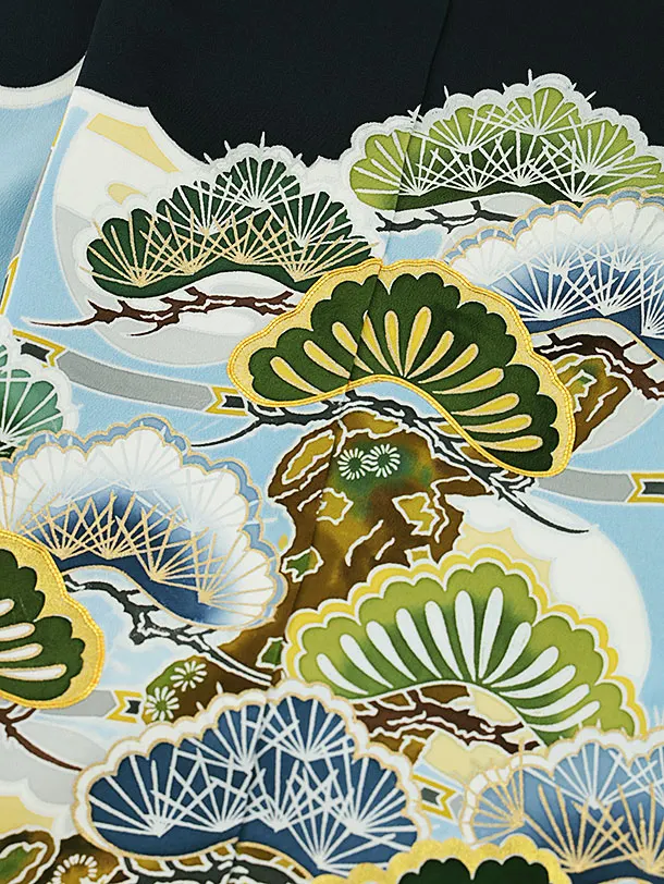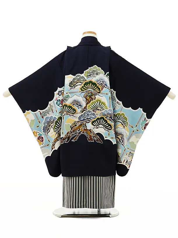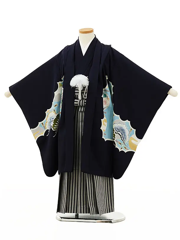 七五三レンタル(5歳男袴)X167【高級正絹】紺地松x黒縞袴