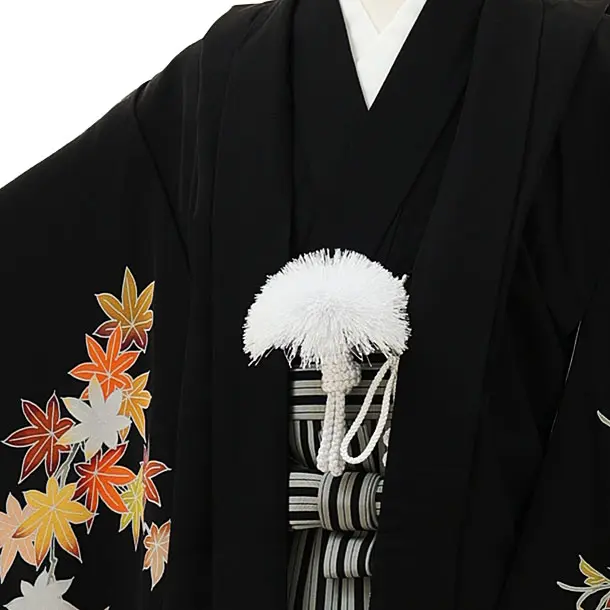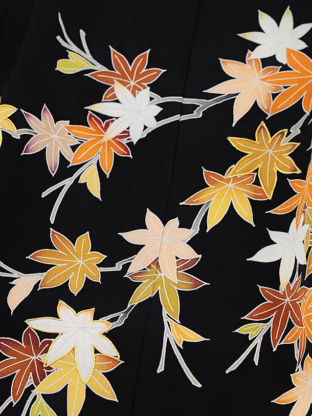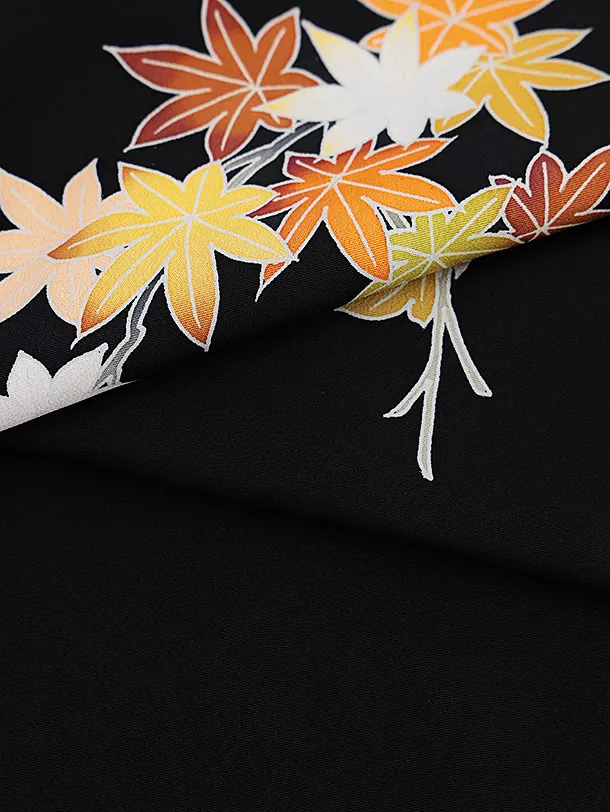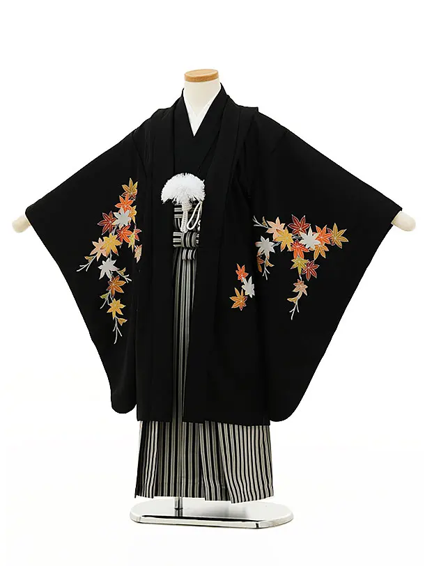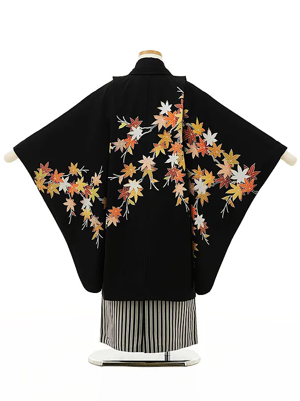 七五三レンタル(5歳男袴)X171【高級正絹】黒地紅葉x黒縞袴