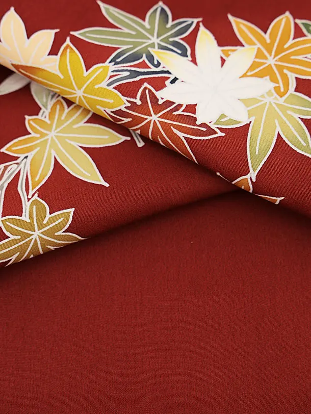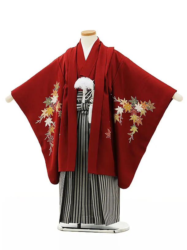 七五三レンタル(5歳男袴)X172【高級正絹】エンジ色紅葉x黒縞袴