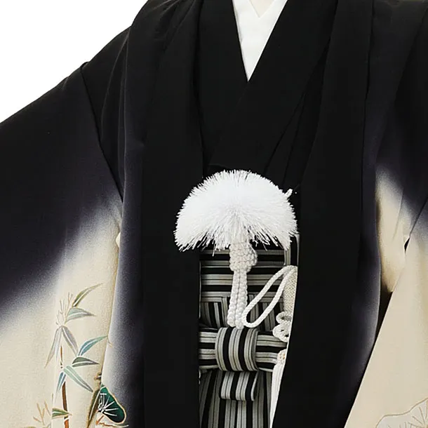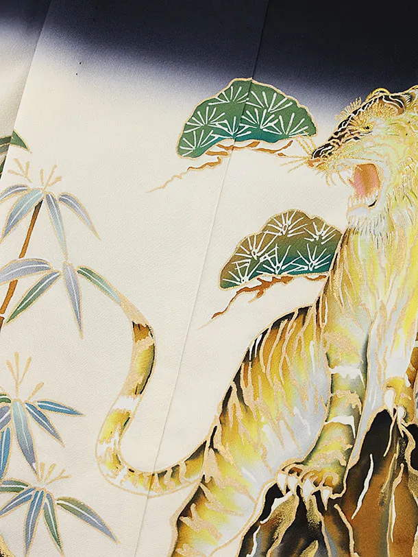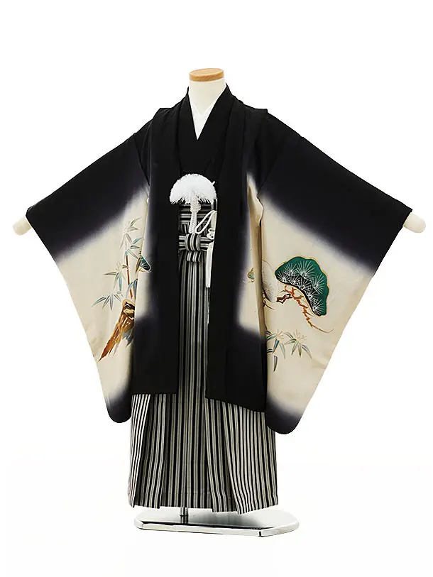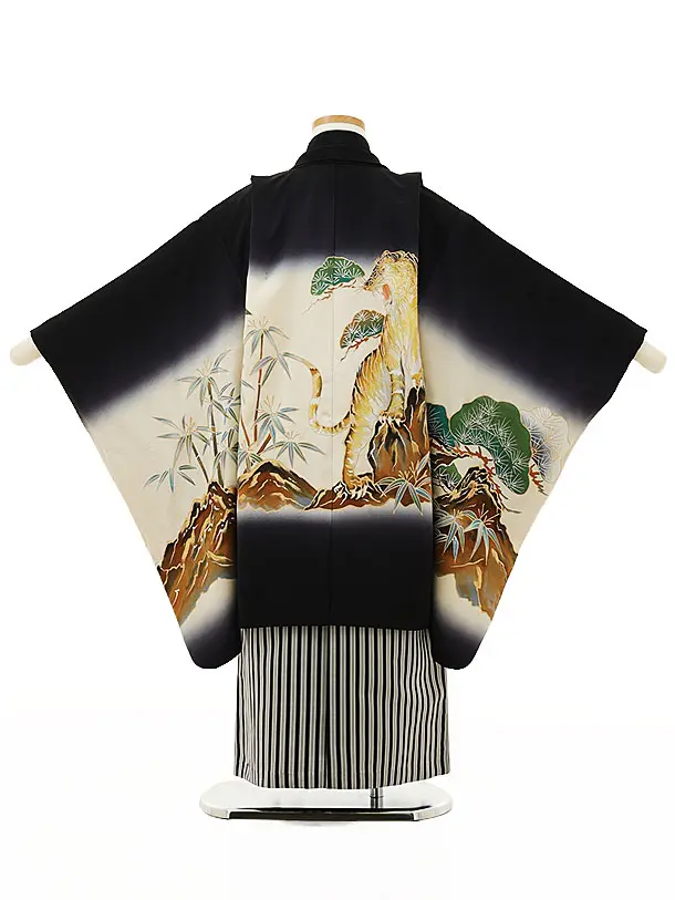 七五三レンタル(5歳男袴)X175【高級正絹】黒ぼかし虎x黒縞袴