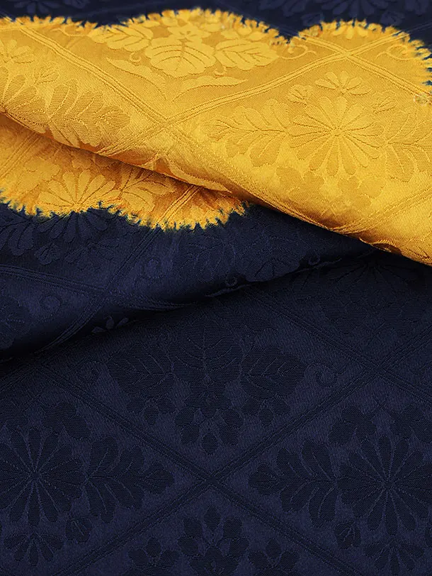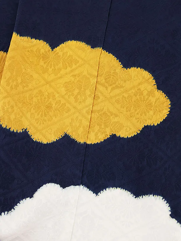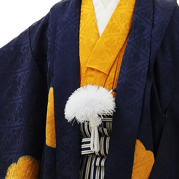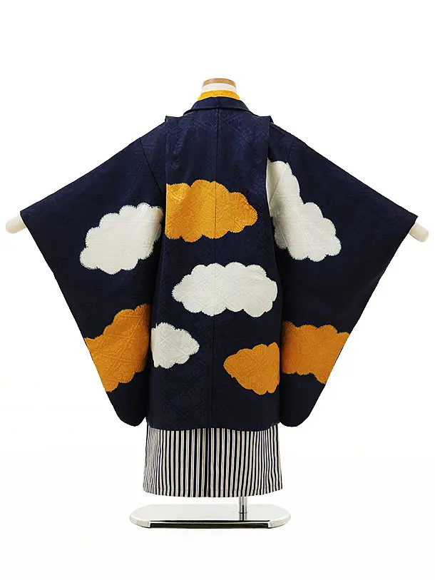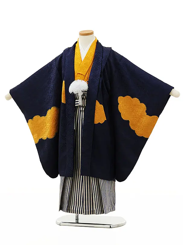 七五三レンタル(5歳男袴)X188【高級正絹】紺地山吹雲取りx紺縞袴